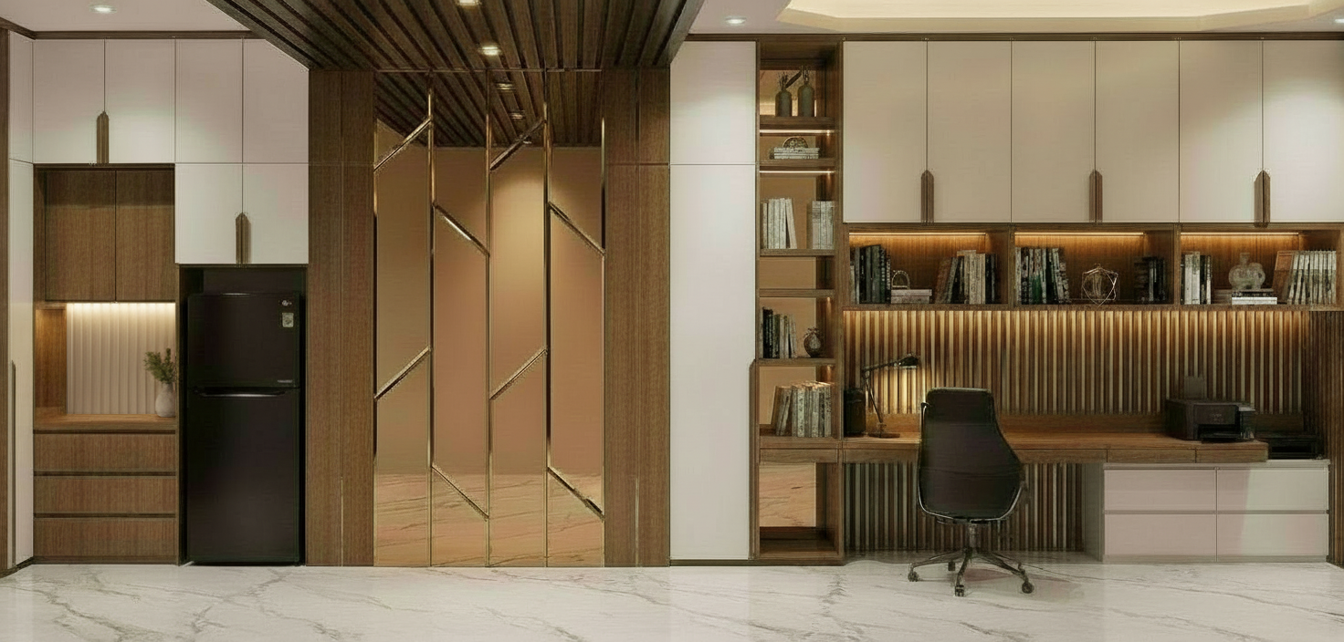 ubah kisi kisi kayu di belakang working table menjadi kisi kisi warna putih