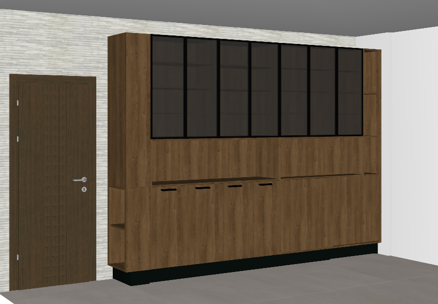 just a 3d render add some lights keep colours as it is add books make a decoration for bookshelf