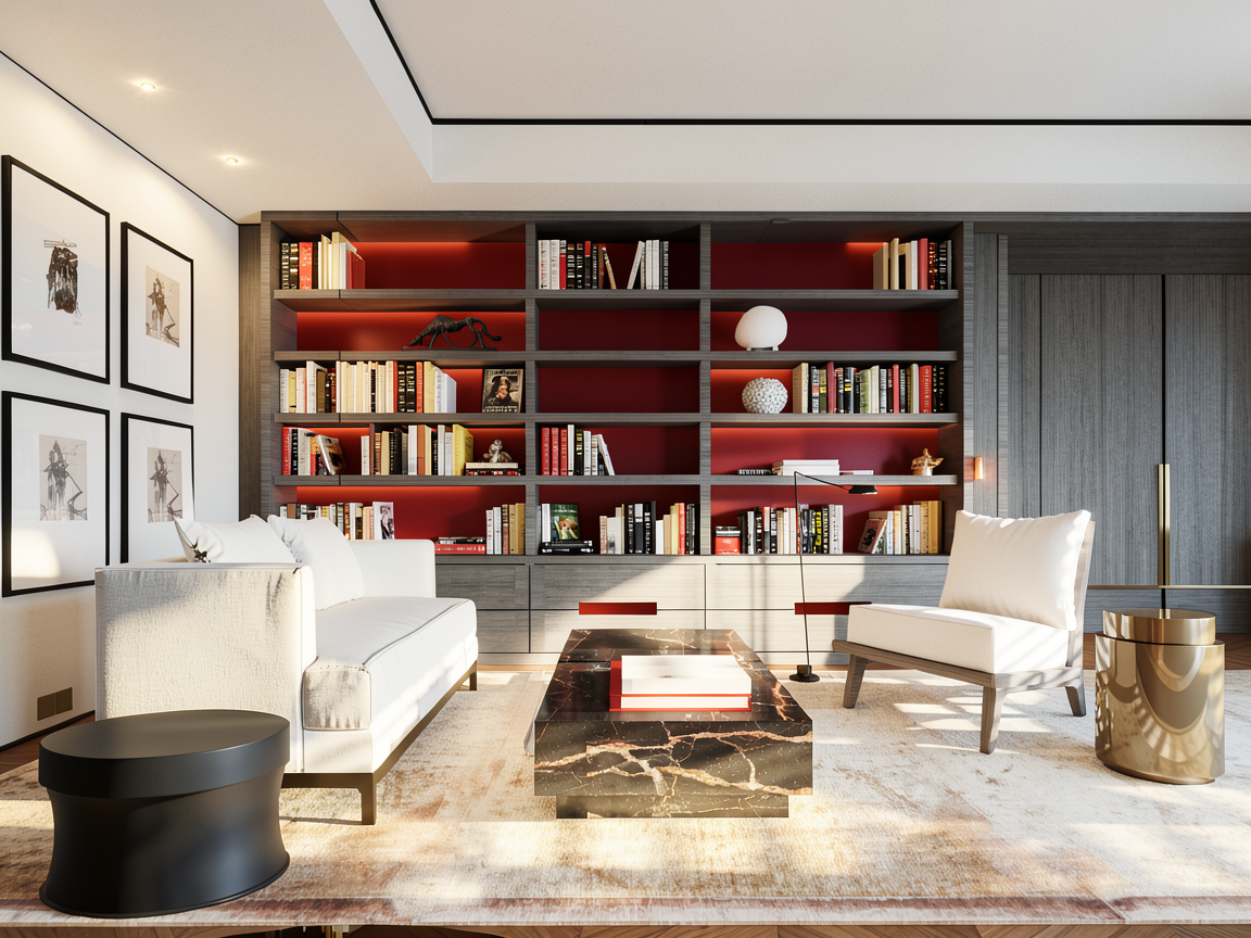 render this kitchen and dining space with strong photorealism maintain all existing materials exactly as they are do not change finishes colours or textures only enhance their realism use natural daylight coming from the outdoor area to softly light the space turn on the pendant light and ceiling downlights with a soft warm glow ensure realistic reflections and shadows throughout add drinks inside the wine fridge under the island bench making them clearly visible and natural include neatly stacked wooden logs in the storage area under the fireplace keep the overall scene clean realistic and true to the original design