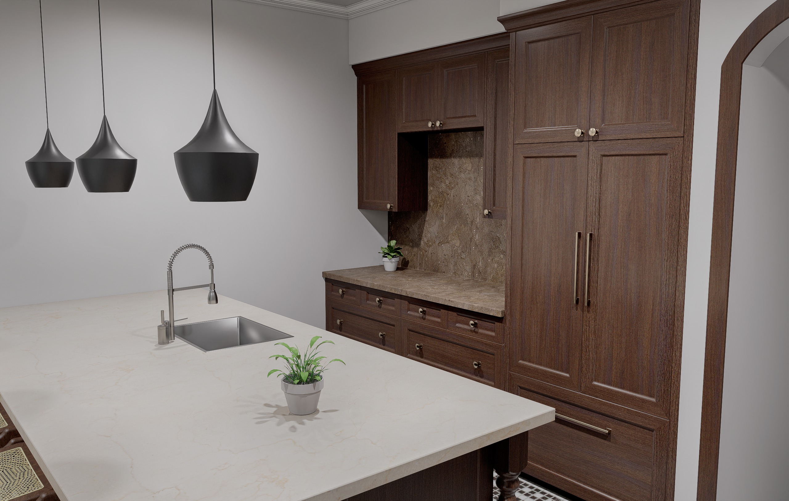 add wood above cabinetry including wood crown moulding also add a picture light overtop of the 4 shallow cabinets