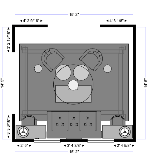 convert this floor plan into a realistic isometric 3d view of a living room show the space from an elevated angle with furniture walls and details visible use the same furniture as shows on the plan do not change the orientation of the floorplan