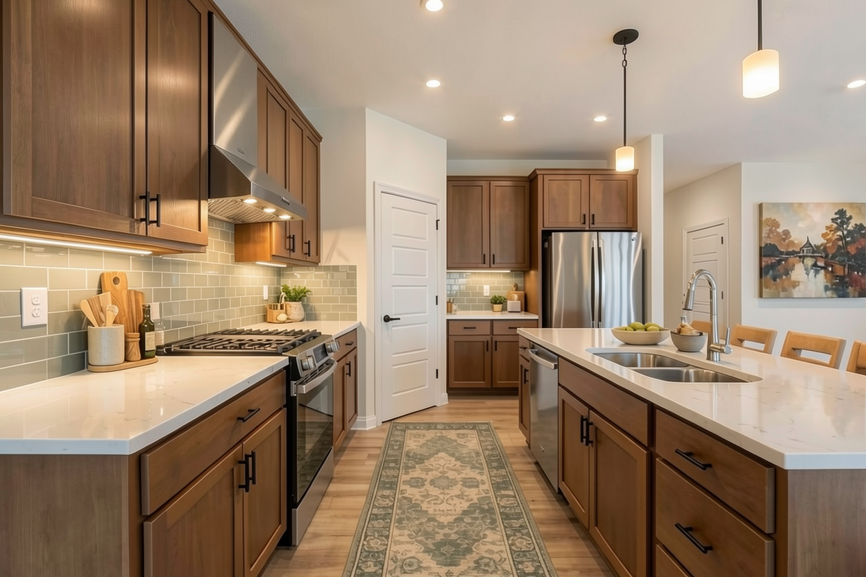leave everything the same except remove the crown molding above the range hood only and take the range hood all the way to the ceiling