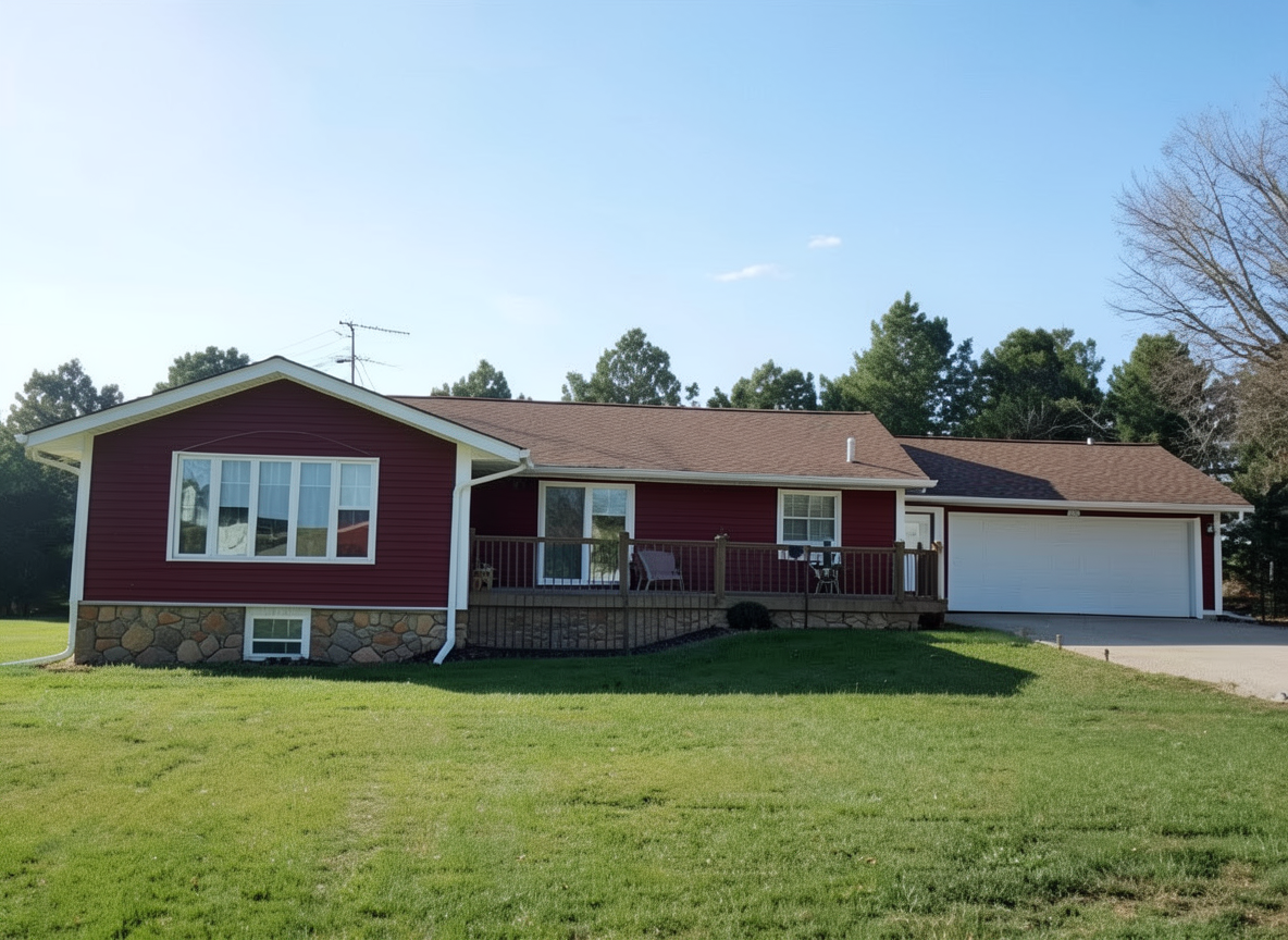 dark graphite siding white windows brown shingles white trim brown stone along bottom