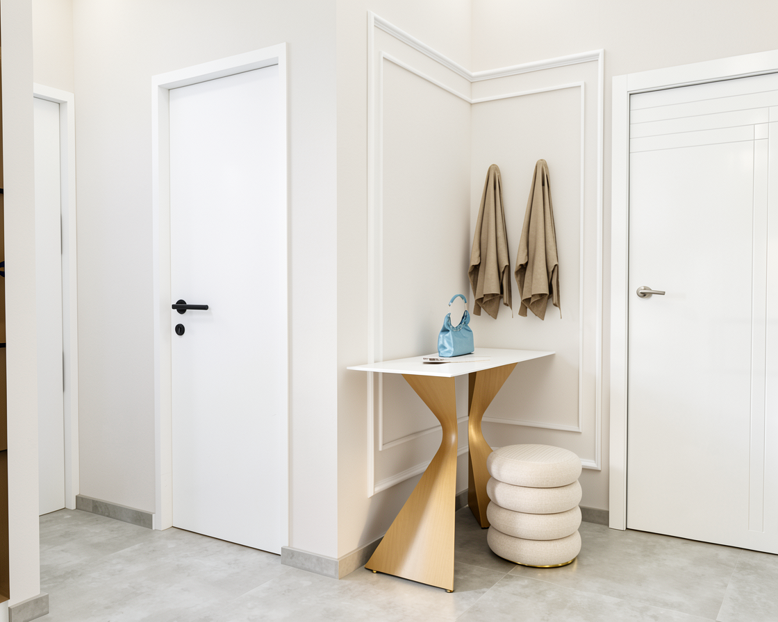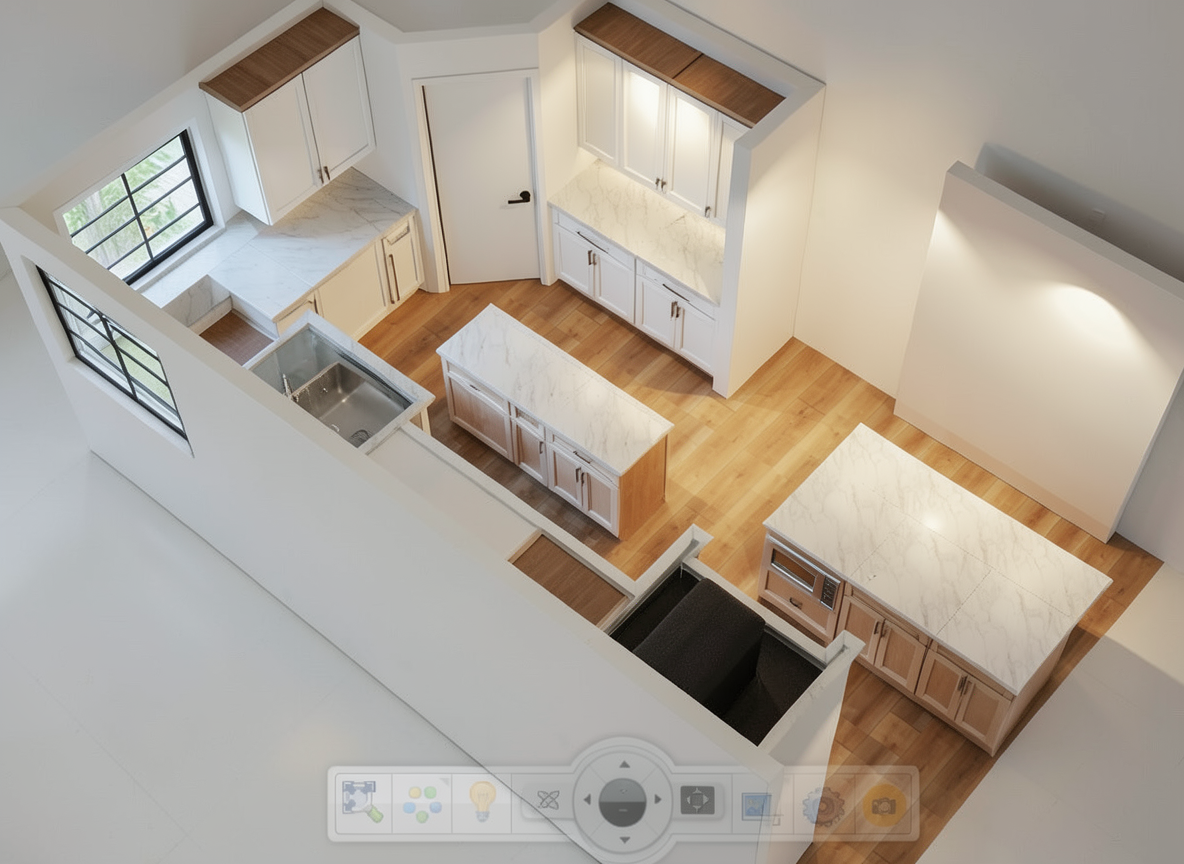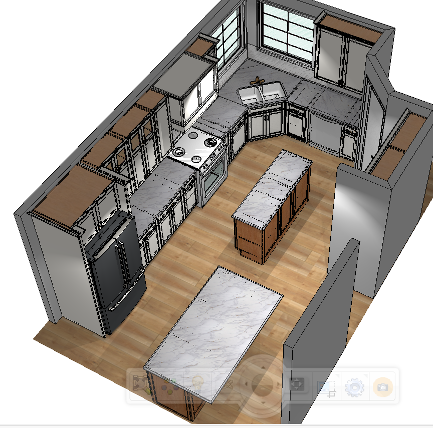 modern kitchen with warm floors white perimeter cabinets with two islands one narrow and one deeper
