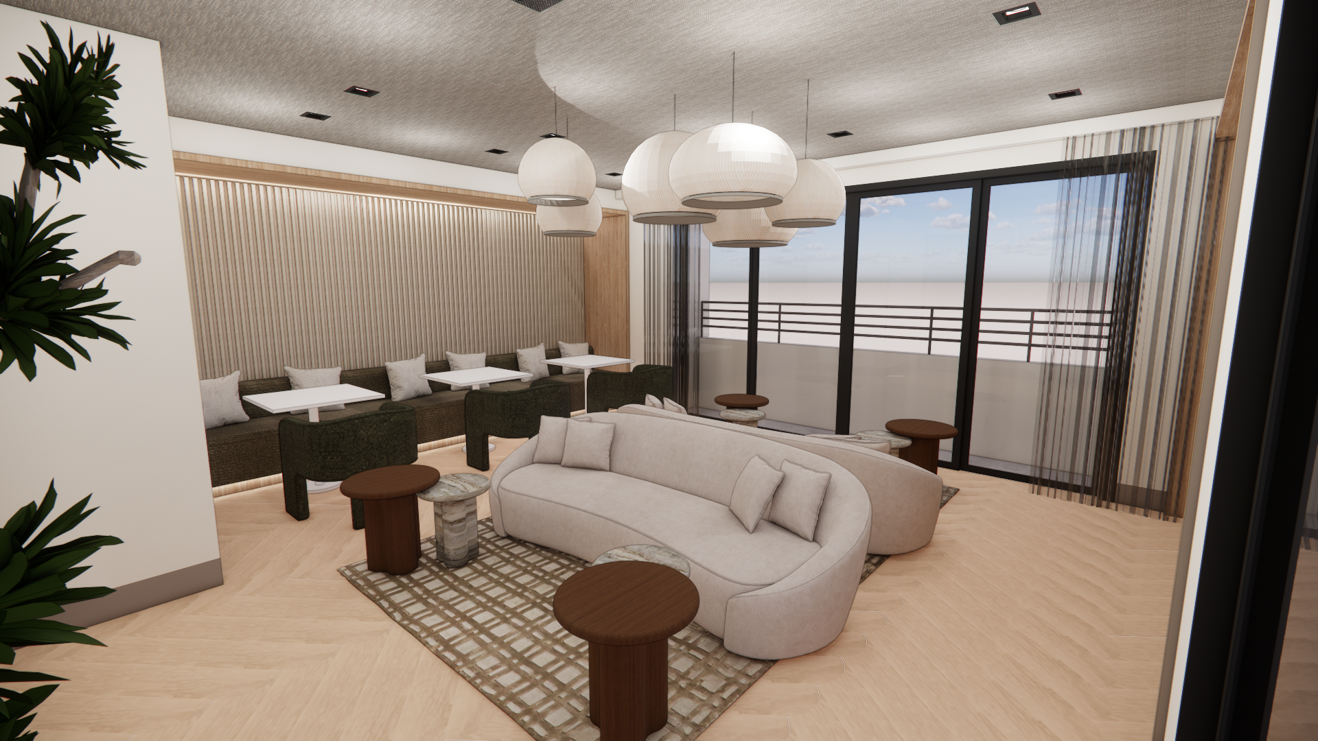 use the uploaded render as the exact base image maintain the original camera angle lens length perspective framing composition and spatial proportions exactly as shown do not alter architectural elements wall locations ceiling details millwork flooring layout window placement or built ins preserve all existing materials finishes textures paint colors tile stone wood tones and lighting design exactly as they appear maintain the same daylight direction shadow quality exposure and overall color temperature keep all furniture decor styling and layout exactly the same unless explicitly instructed otherwise do not reinterpret the design restyle the space modernize it or adjust proportions only modify the specific items that will be listed in the next prompt the goal is to enhance realism and material fidelity while preserving the original design intent 1 1 output should be photorealistic with natural material depth accurate reflections realistic fabric texture subtle imperfections and true to life lighting update the 3 tables to be a light bronze finish update the color of the 3 dining chairs to a taupe finish