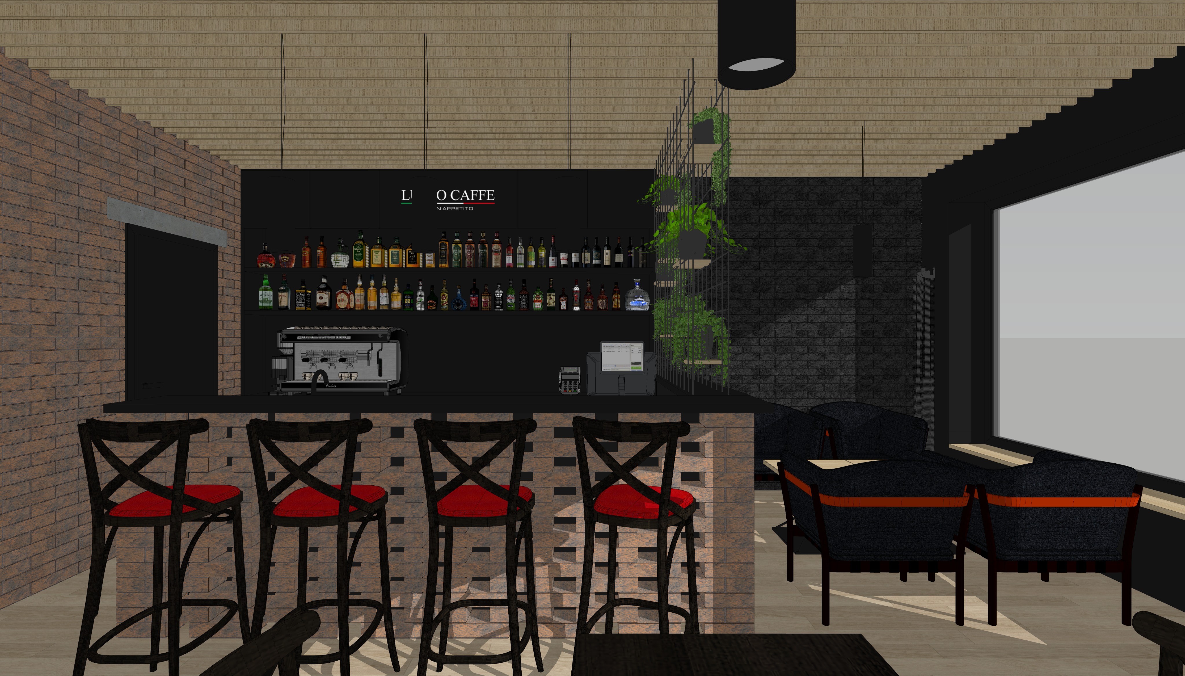 add a pedestrian area with a park outside the window