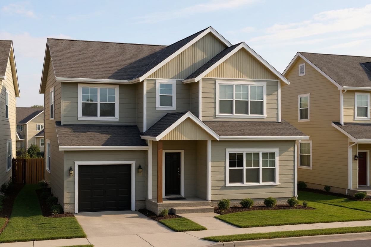 put in a neighborhood and change window and door frames to white make two next to eachother in different colors
