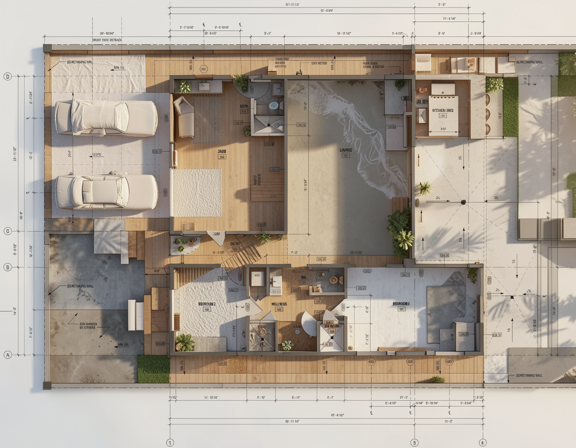 keep everything the same colors and materials ceramic tiles in travertine color for all floors and walls ceiling and right side wall in white paint color travertine countertop walnut vanity black shower fixtures add irregular shape frameless led lighted mirror on sink wall add strip led light inside shower niche on the top part