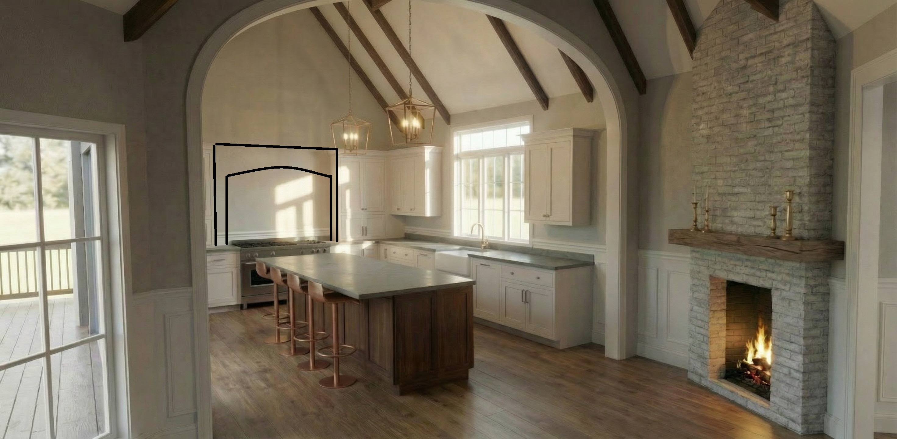 put a plaster range hood in the area outlined in black