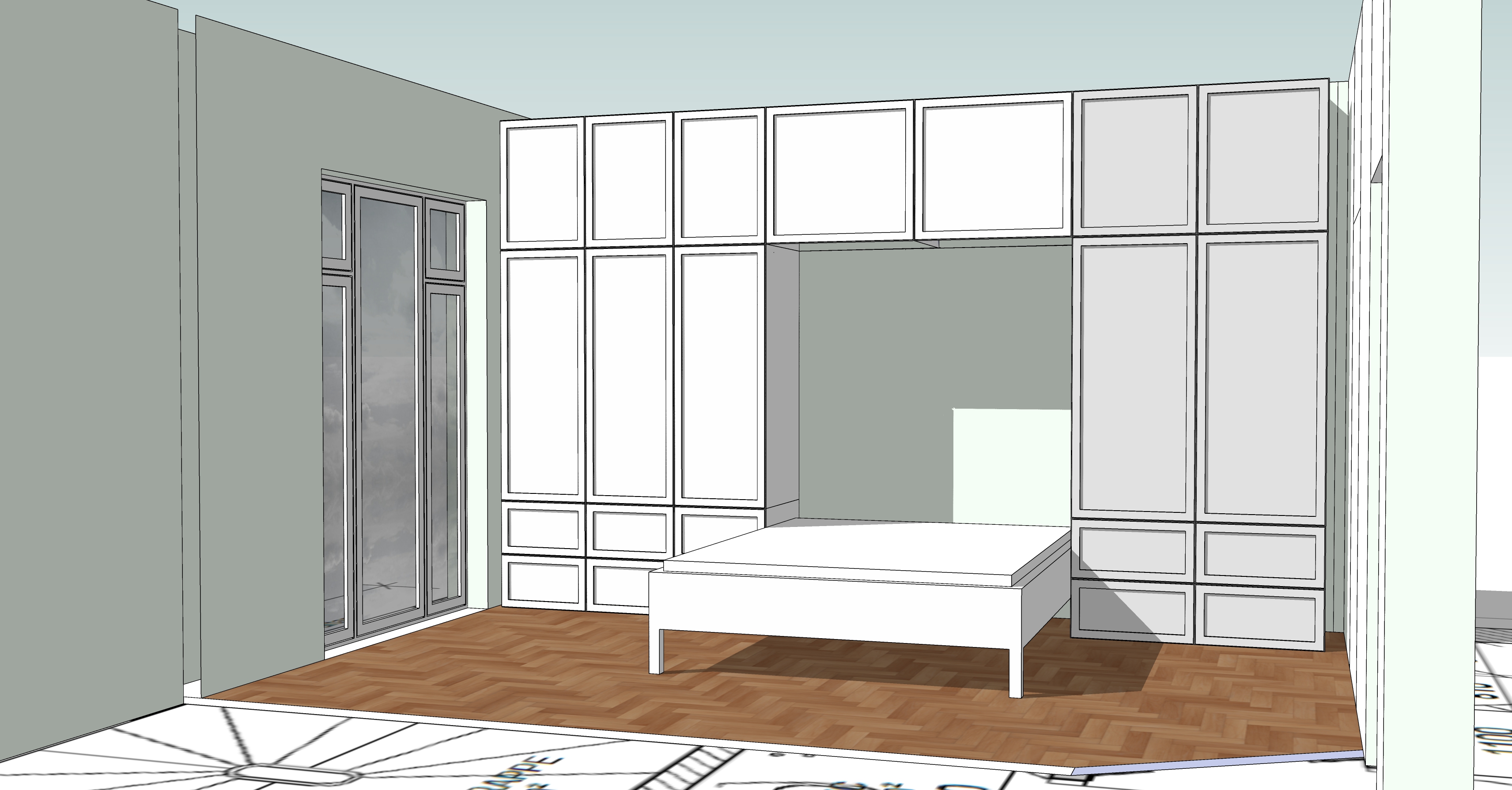 render this image with realistic materials keep room geometry exactly as in the input add light to the lamps in the ceiling transform the picture into a varm and cozy bedroom with cool designer stuff render this image with realistic materials keep geometry exactly as in the input make it look nordic cool no modifications to openings windows or roof
