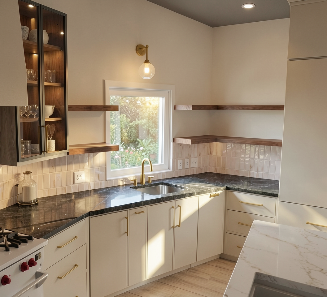 make as photorealistic as possible while keeping textures the same as selection professional landscaping in columbus oh with good lighting match materials to plan and remove any text siding ebe8db trim ebe8db soffit and fascia white windows black door black roof moire black certainteed square posts as shown pine unfinished smooth concrete foundation