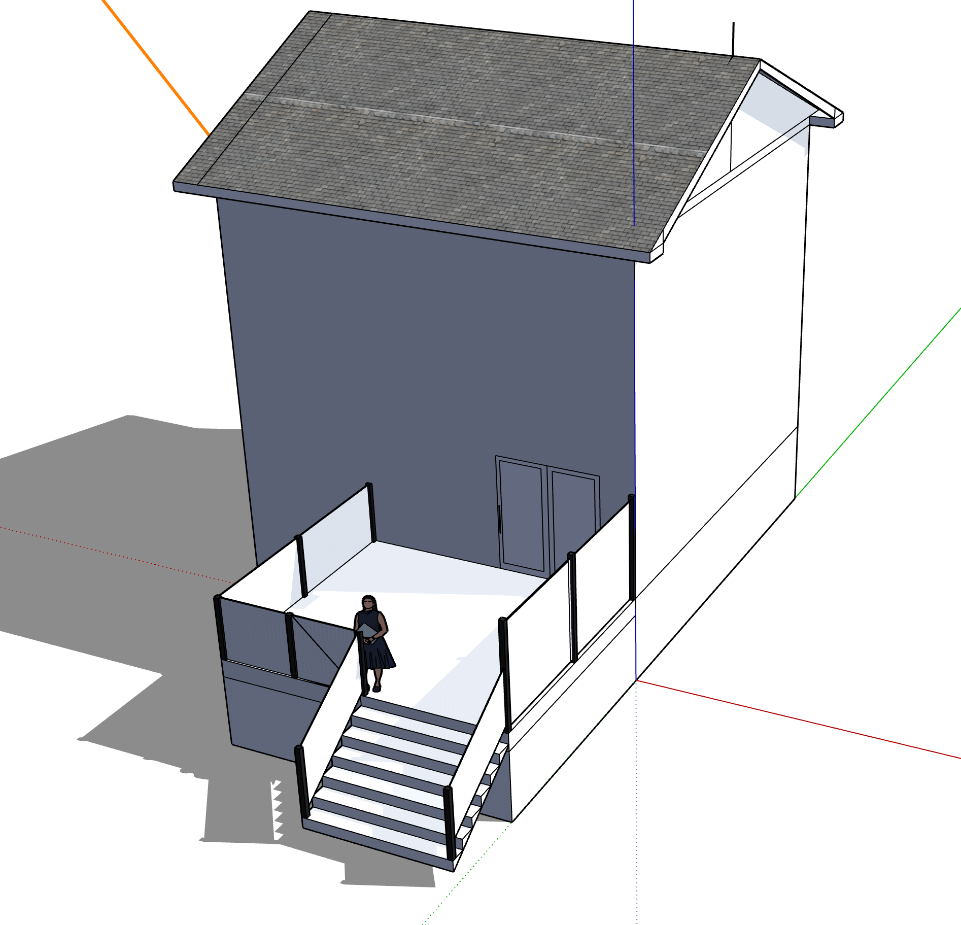 patio en bois trait brun avec un mur intimit en bois trait brun le mur intimit les planche son espac de 1 pouces entre chaque et est compos de planche trait avec des poteau en aluminium noir les garde de corp son en aluminium noir avec des baratin d aluminium noir et les cot son en bois trait le meme type que la planche sur le dessu la maison est en rev tement vinyle de couleur beige toiture de bardeau asphalte