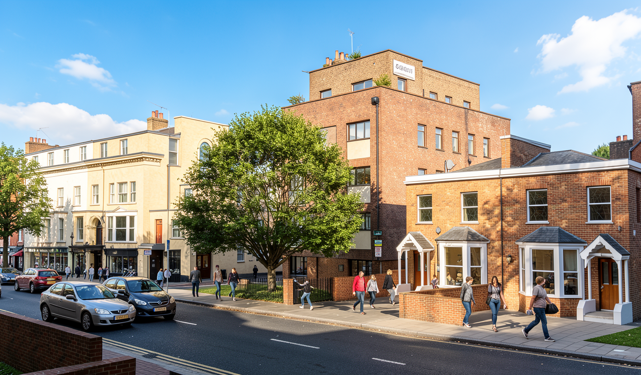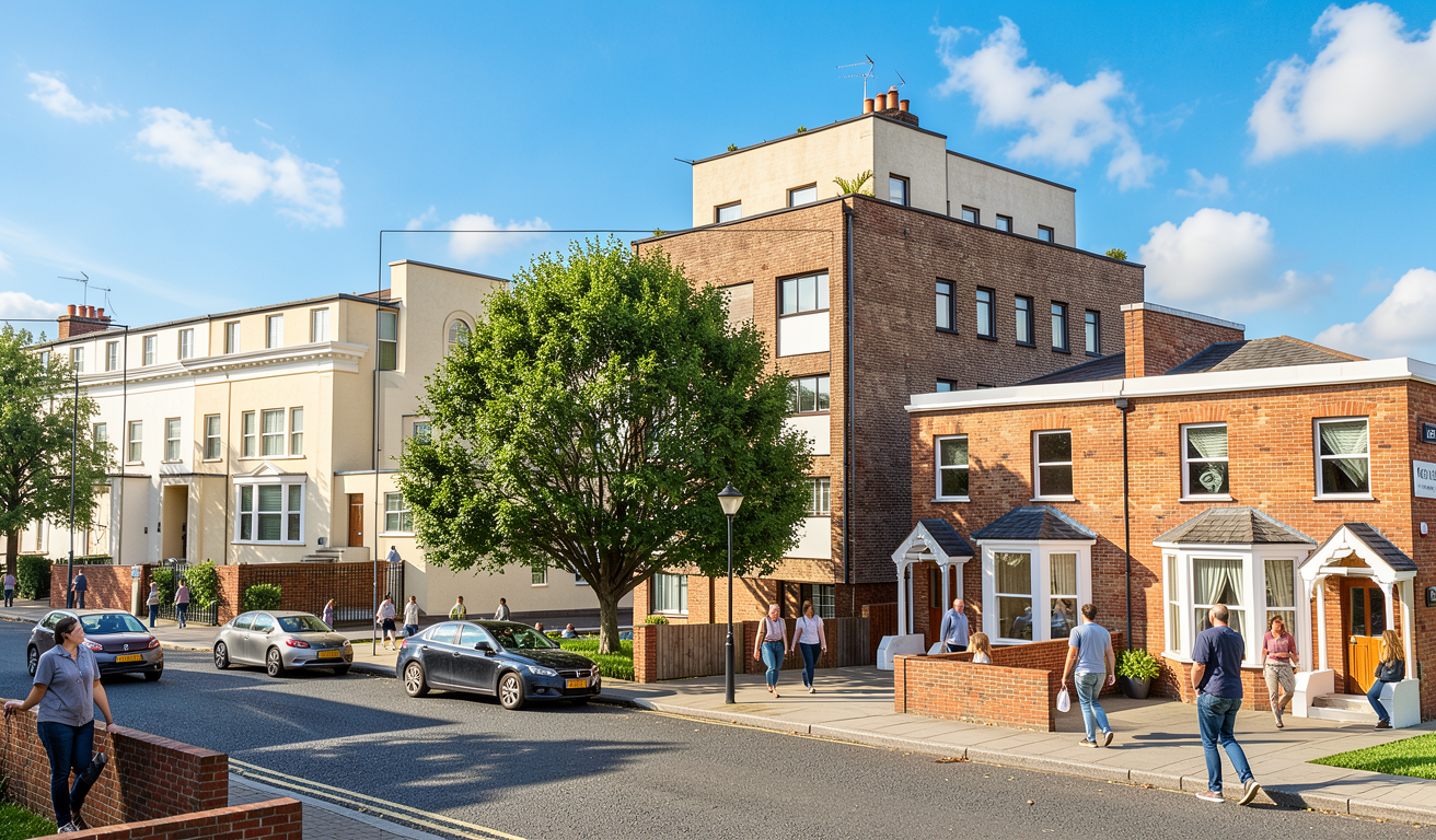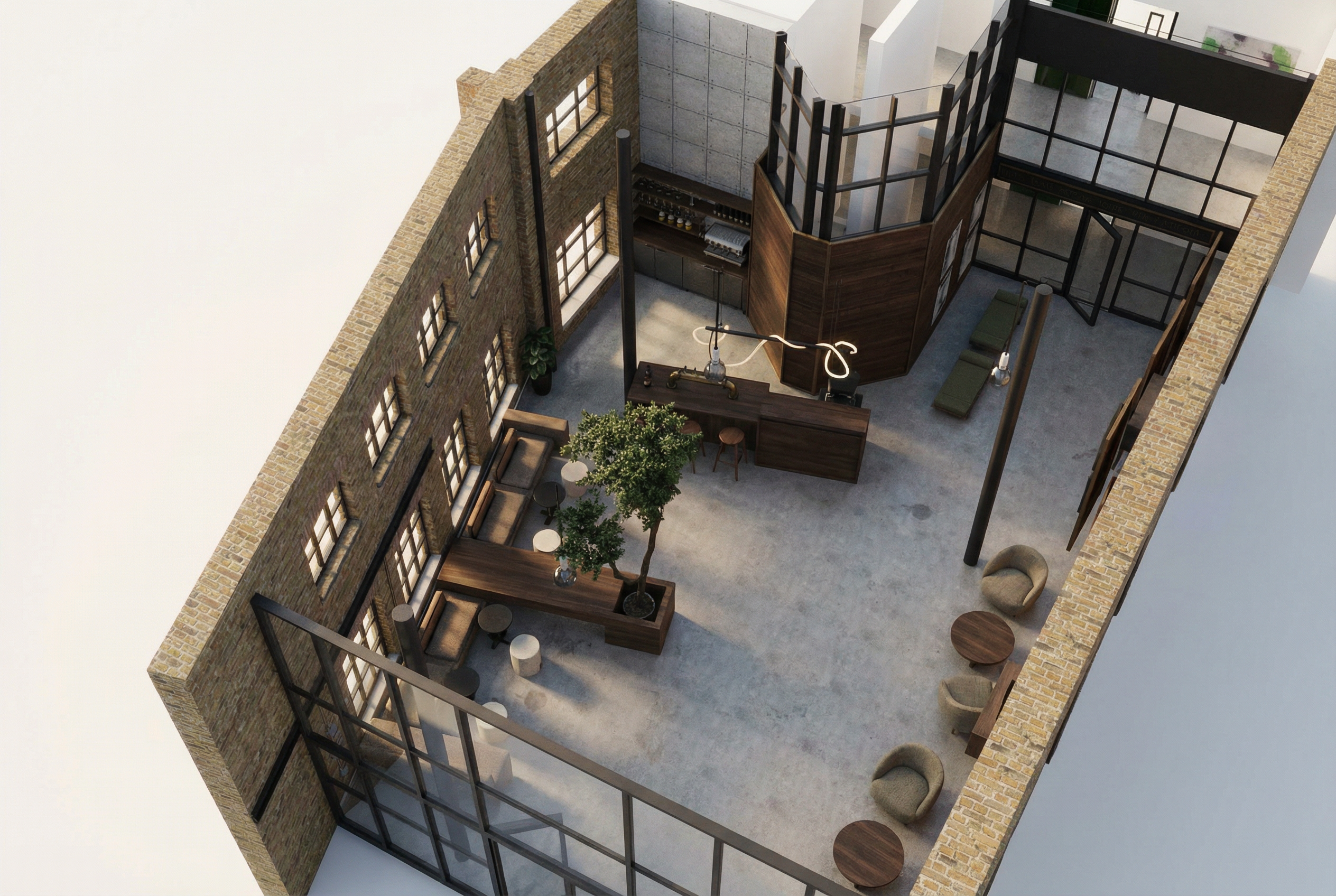 modern architectural floor plan rendering crisp lines and detailed layout warm beige walls sleek grey flooring soft white ceilings light wood furniture bright blue pool areas vibrant green garden elements ambient natural lighting creating a serene and luxurious atmosphere