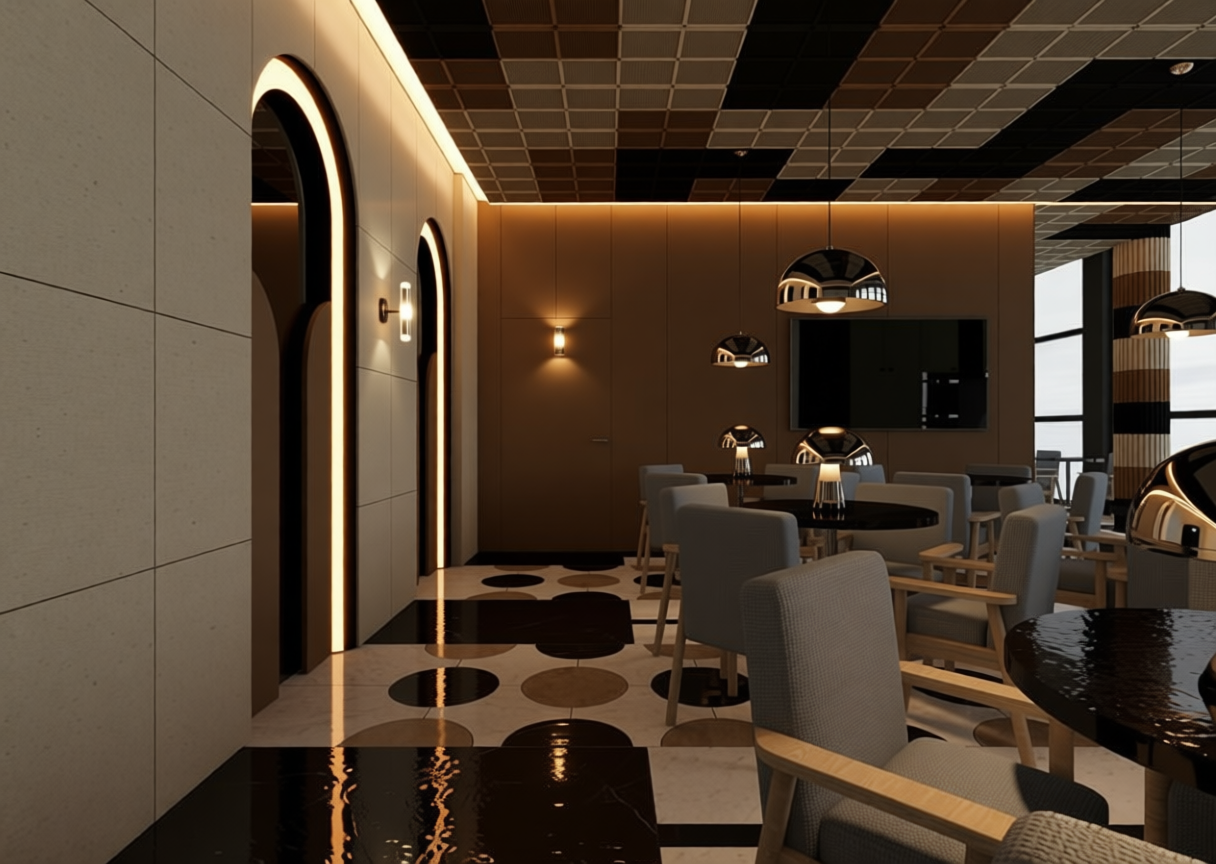 elevated view of the green roof of a contemporary sustainable building extensive green roof system with low vegetation and a calm minimal planted roof landscape solar panels remain located exactly in their current position on the far side of the roof arranged in neat rows and not relocated or expanded the perimeter of the roof planted with a limited amount of natural low shrubs and small bushy grasses inspired by an australian landscape vegetation is sparse and controlled with short bushes and scattered grass clusters only along the perimeter edge avoid dense planting and avoid an overly vegetated roofscape roof planting appears maintained and restrained with subtle natural textures typical of australian native grasses and shrubs remove any existing people in the scene and replace them with only two people standing together positioned quietly and looking away from the camera while admiring the peaceful rooftop landscape clean architectural composition sustainable design aesthetic solar panels clearly visible and unchanged in placement architecture and roof layout remain dominant