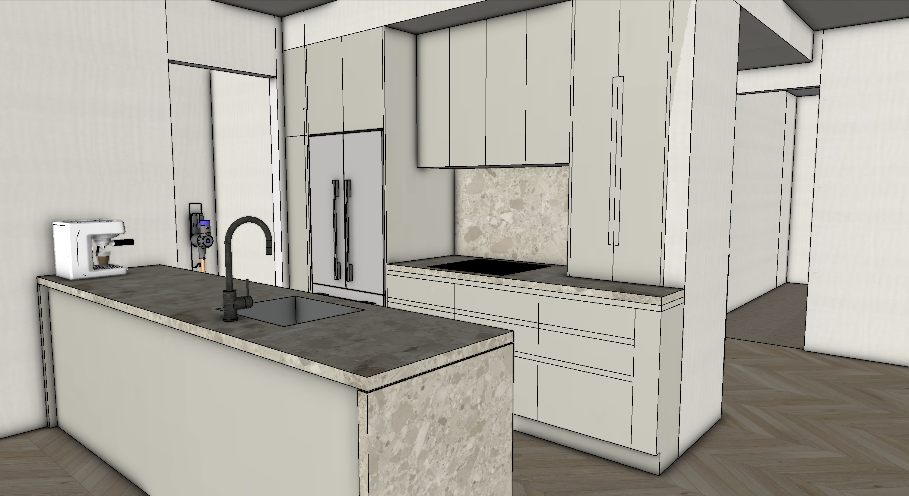 a photorealistic interior render of a room type e g living room kitchen open plan loft in a architectural style e g modern minimalist scandinavian industrial design the space features precise geometry and proportions mention e g 3 m ceiling height full height windows 90 wall intersections symmetrical layout materials list materials e g light oak wood floor polished white concrete walls matte black steel window frames textured wool rug lighting natural daylight streaming from the left through large floor to ceiling glazing soft ambient artificial lighting accurate shadows and reflections on surfaces camera wide angle lens 24 mm full frame equivalent eye level vantage 1 6 m slight depth of field for foreground to background clarity no distortion the composition emphasises architectural clarity clean lines balanced proportions geometric order minimal clutter atmosphere calm daylight high end residential quality ultra realistic finish output high resolution finished render with realistic textures subtle imperfections e g slight grain in concrete faint seams in wood flooring and physically plausible lighting