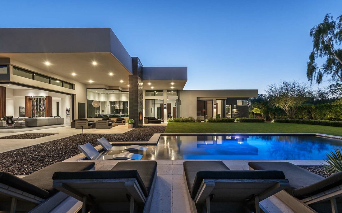 change to a starry sky night scene make trees taller reduce lighting on the interior
