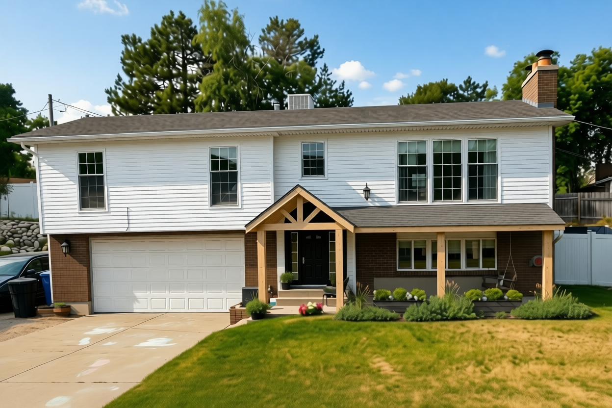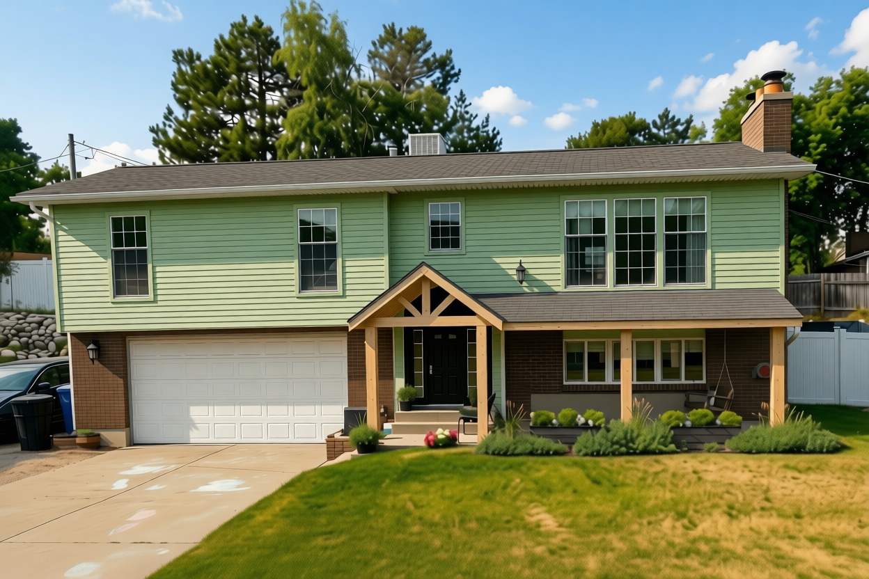 lets try a beige siding on the upper level and do black shingles on the roof