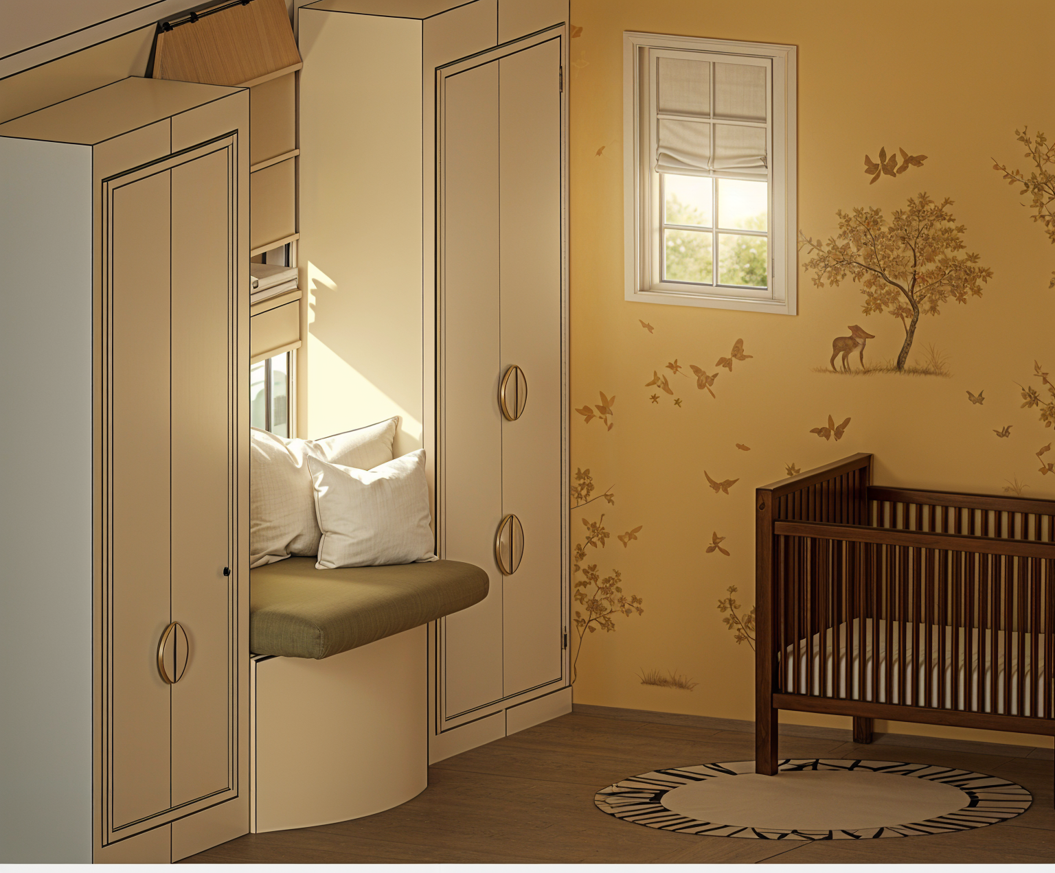 new york chic vibe radiused reading nook with roman shade butter yellow color