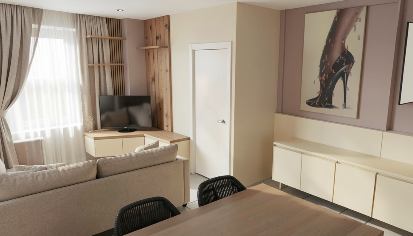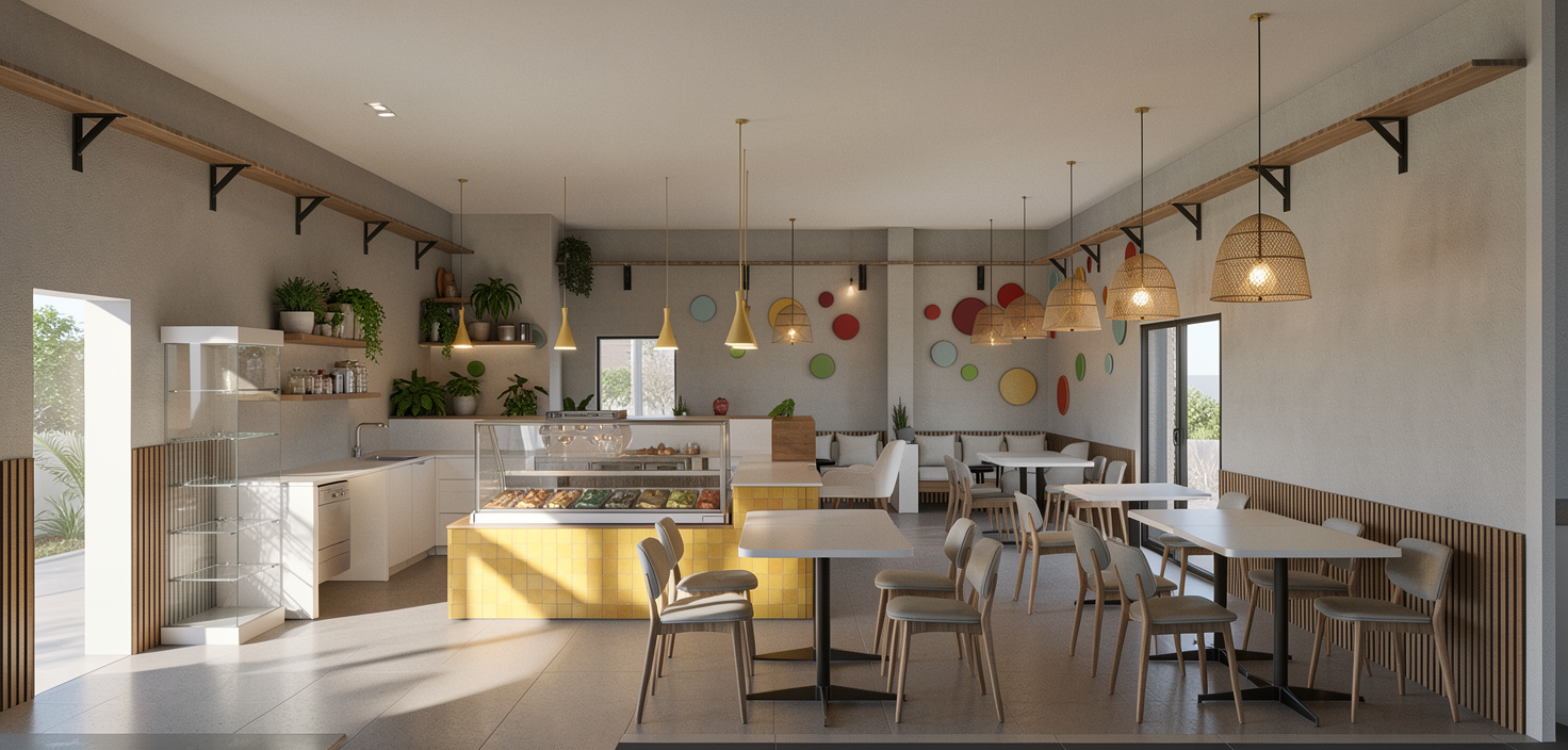 ultra realistic architectural visualization based strictly on the provided raw sketchup view preserve exact geometry proportions camera angle composition and architectural details do not redesign or alter the building enhance only with realism add realistic materials with physically accurate textures natural wood grain brushed concrete glass reflections subtle imperfections micro surface details use high dynamic range lighting with soft global illumination and realistic shadows create a lively atmosphere add naturally positioned people interacting casually walking talking using phones subtle motion blur on some figures for realism include small groups rather than posed characters add a few animals appropriate to the setting e g dog on a leash birds in the sky avoid people and dogs in the middle of the road enhance environment with greenery slight wind in trees varied vegetation tones small urban details parked cars benches subtle signage add depth with atmospheric perspective and realistic sky conditions golden hour soft overcast choose whichever enhances the mood cinematic composition photorealistic rendering 8k detail realistic depth of field natural color grading slightly warm tones architectural photography style shot on full frame camera 35mm lens maintain realism over stylization avoid cartoonish or ai looking artifacts preserve the brown circles