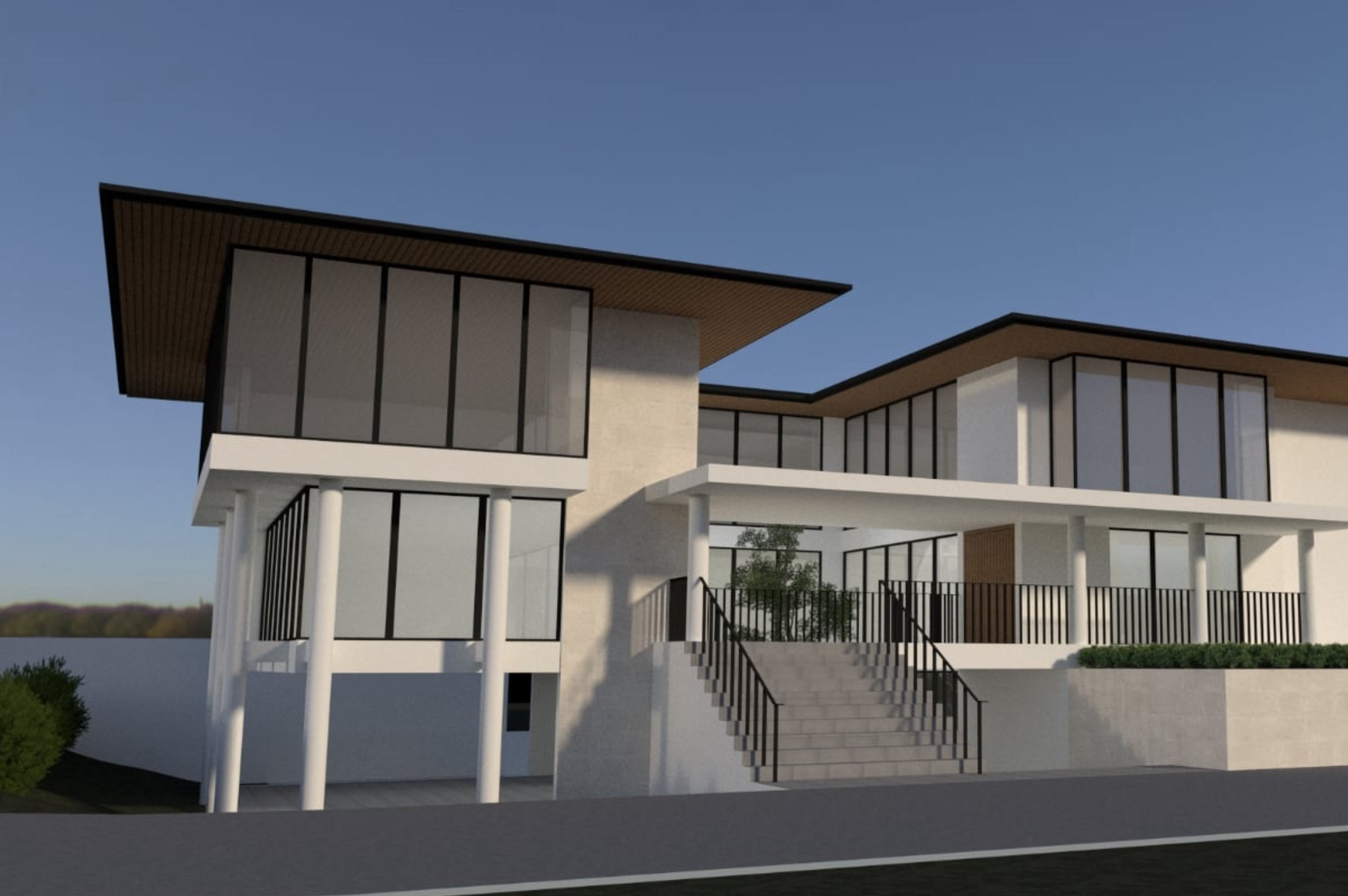 realistic rendering dawn scene turn on all interior lights strip lights on stair steps