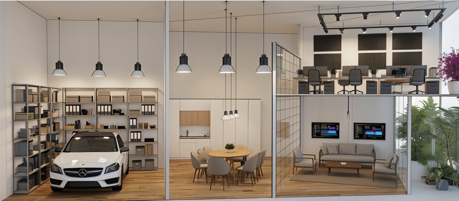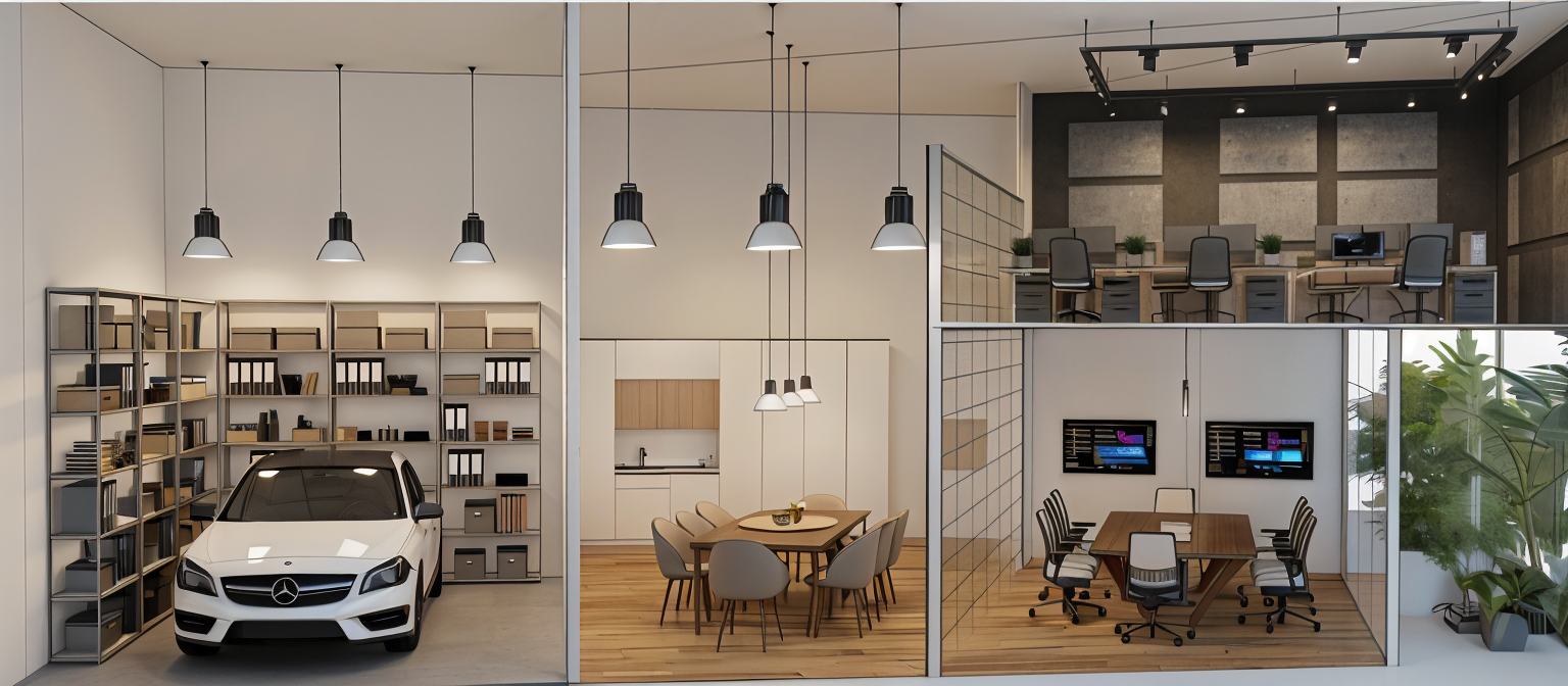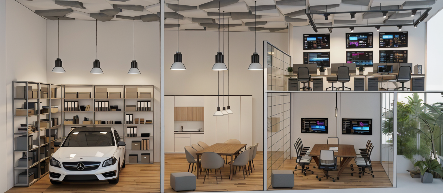 perspective shot black boxes are tvs tvs are turned on to stock market acoustical panels on the ceiling do not add extra architecture