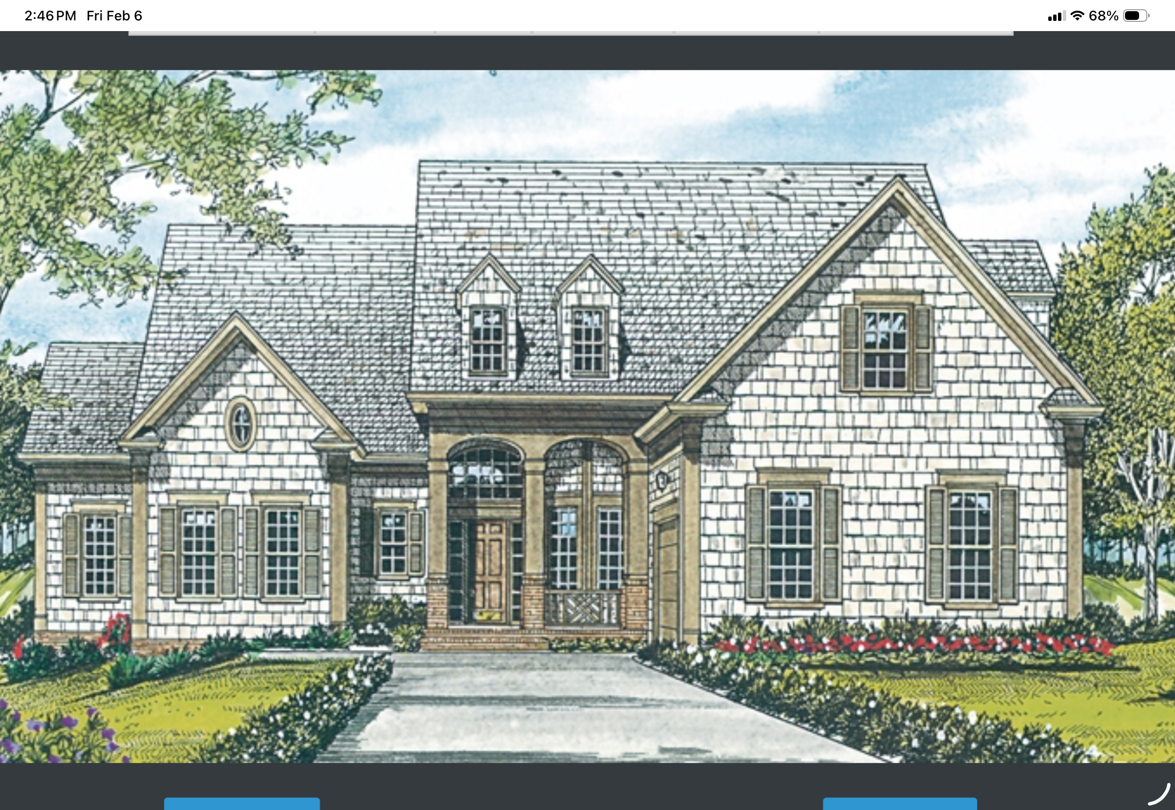 shaker style home in golf course neighborhood with lush landscaping a d vivid blue sky