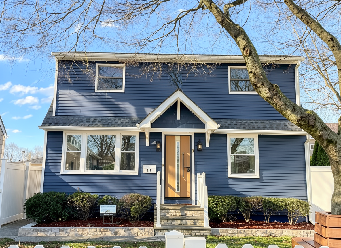 change the blue siding to a brown colored stucco