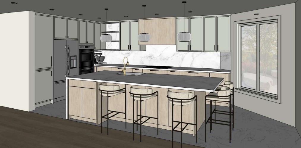 i need to decorate this kitchen for a photoshoot tomorrow please add some decorations and give me some idea how to stage this kitchen do not change the structure dimension and design of the kitchen
