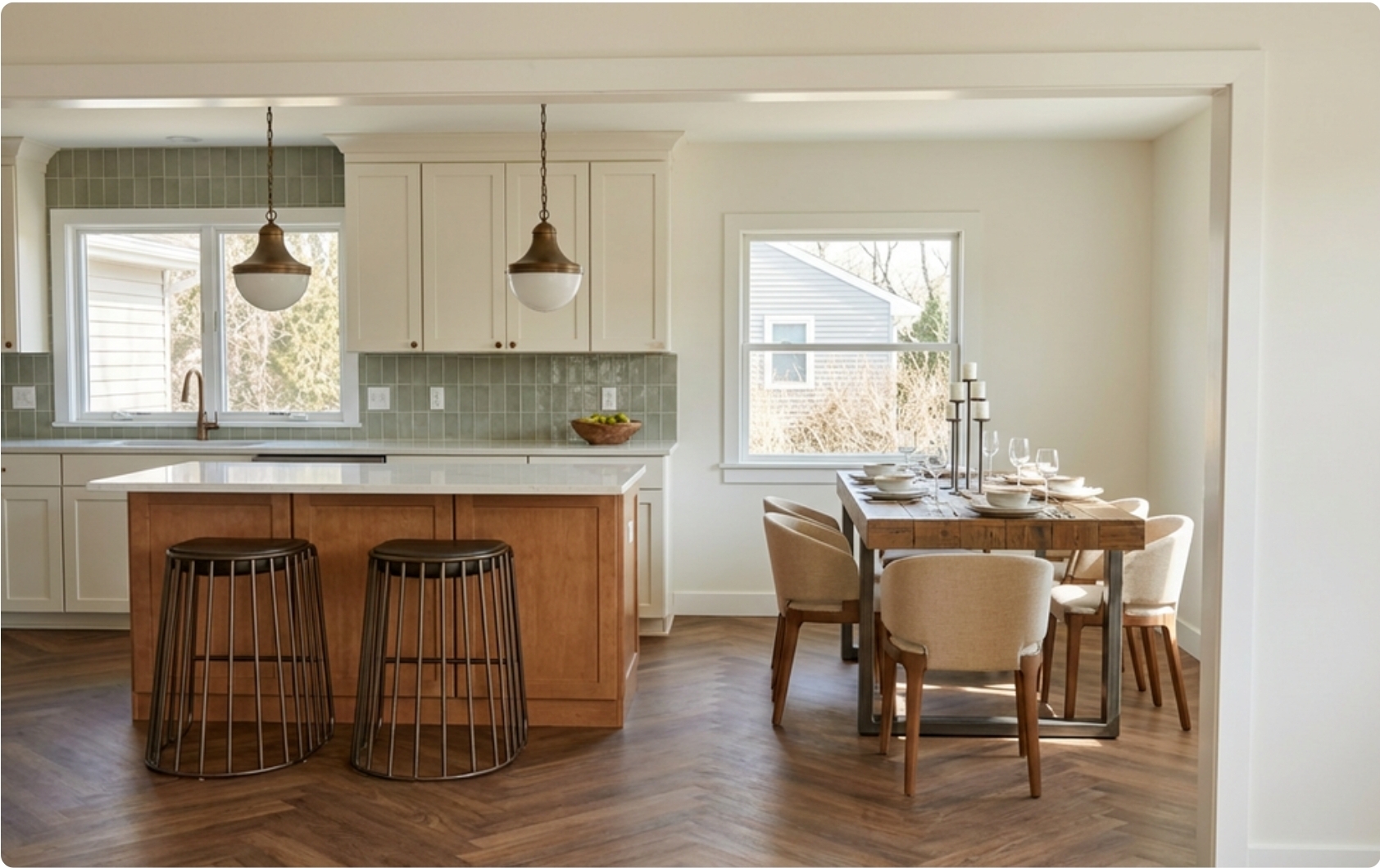 keep everything the same make the island cabinets a faint aqua color and the countertops a black and white granite the perimeter cabinets are off white