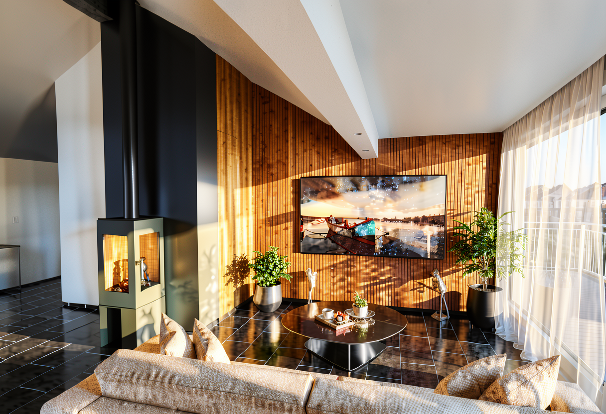 fen tre en arche droite du foyer en pierre le mur au fond