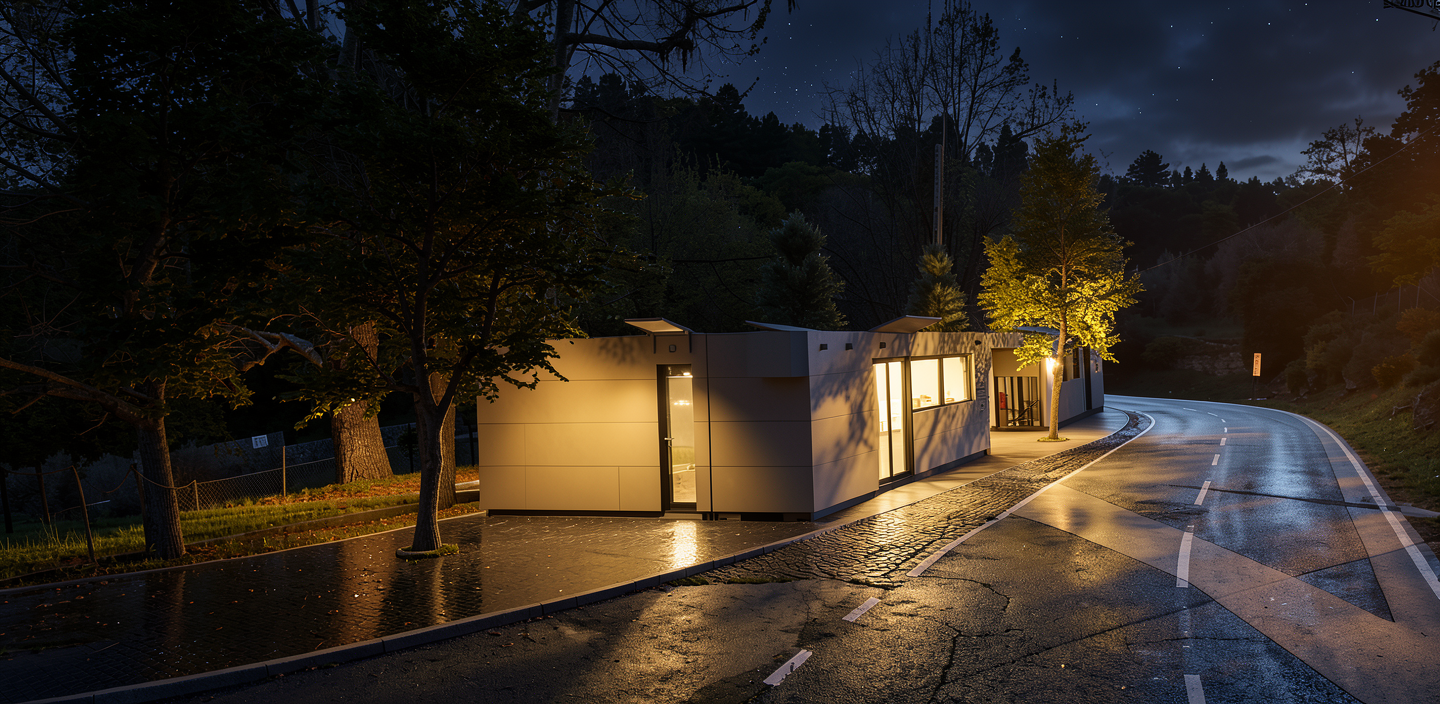 add a driveway by the garage doors at the end of the right house
