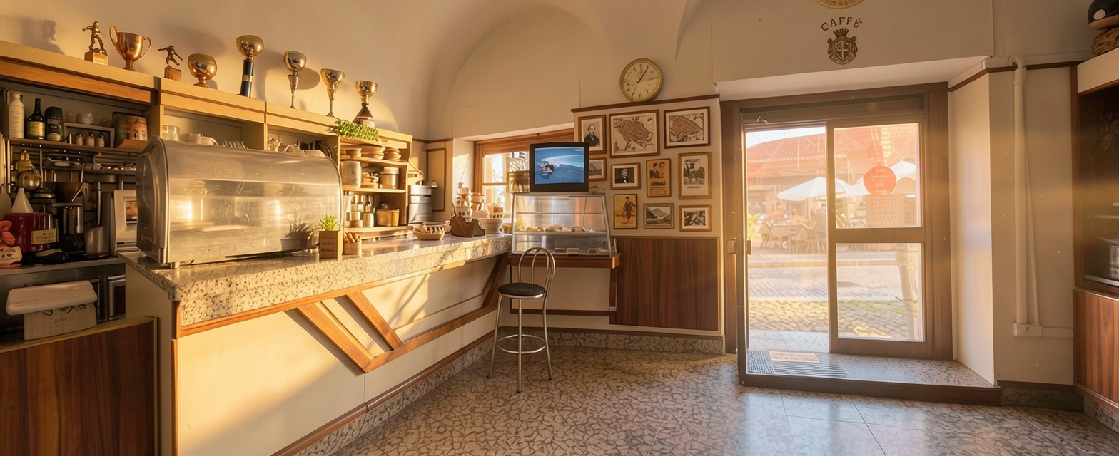 non modificare nulla dell immagine inserisci 4 ragazzi davanti al bancone