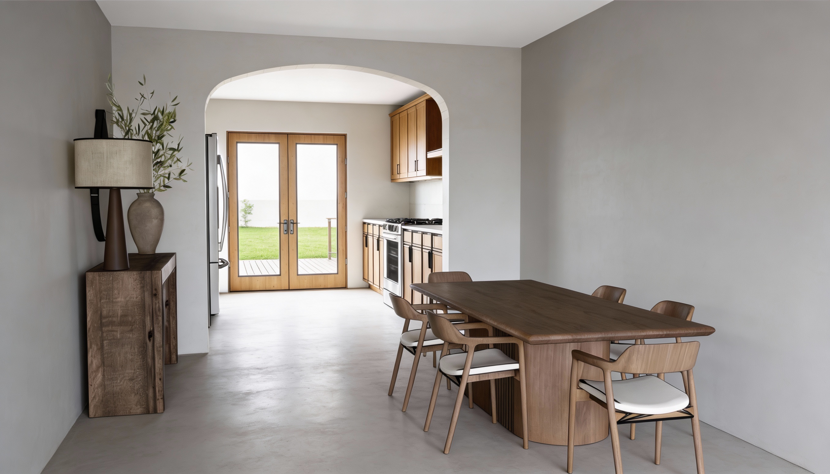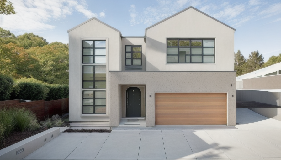 make this photo stand out add landscaping modern clean look also edit the stone to more earth tones and add windows above the 4 at the top right like cathedral windows to follow the roof line