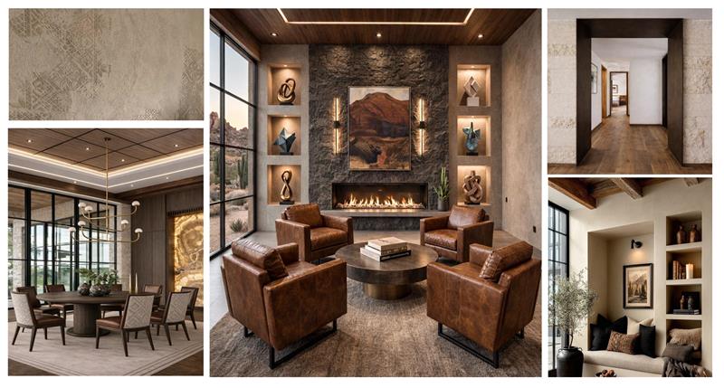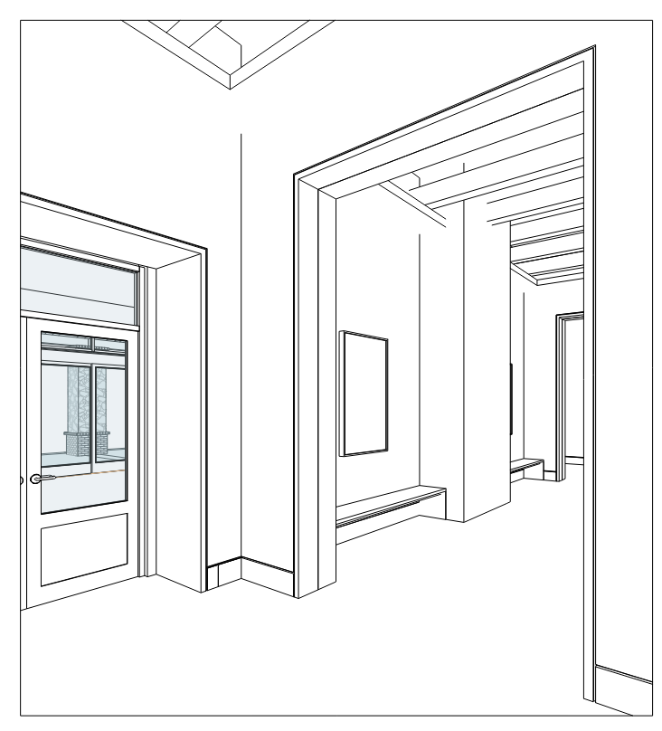 exterior shot rendering this corridor elevation to match the look and feel of the attached mood board the walls should be stacked lime stone and the opening should have the same wood wrap at the upper right image