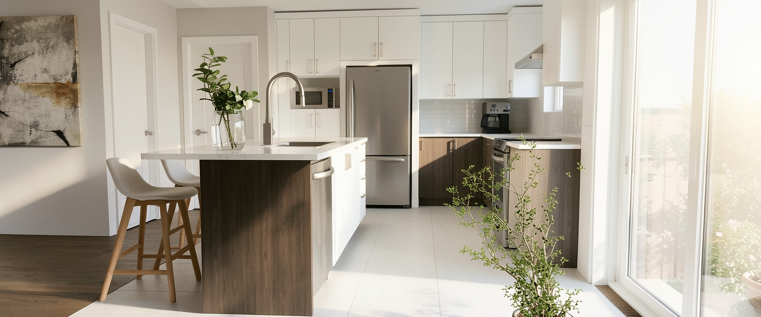 keep geometry maintain color les cabinets pale sont blanc ilot couleur bois un soupcon plus fonc