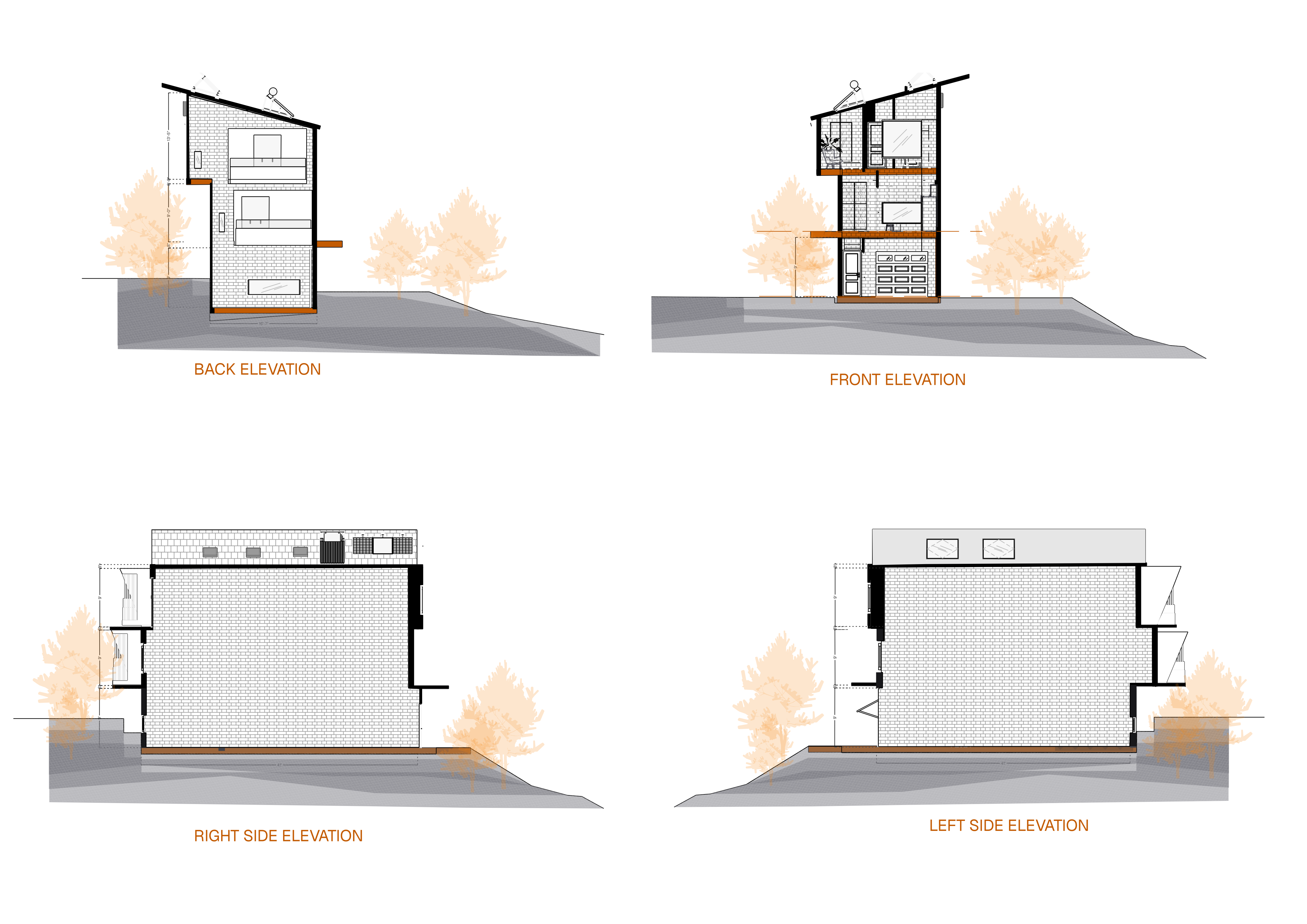 minimalistic eco modern condo fa ade inspired by scandinavian and japanese design three storey townhouse with clean geometric massing smooth white stucco natural wood slat accents and black metal window frames ground floor features a sleek single car garage with modern paneled garage door and a minimalist front entry door with sidelights second floor showcases a large projecting bay window for the kitchen with energy efficient glazing and slim black framing third floor features an even larger bay window for the kids room extending outward with modern angles and soft natural light green rooftop garden vertical greenery panels rain chain solar shading fins and native landscaping along a permeable stone walkway calm sustainable modern proportions rendered in high end architectural visualization style straight on elevation view crisp lines soft natural daylight ultra realistic textures
