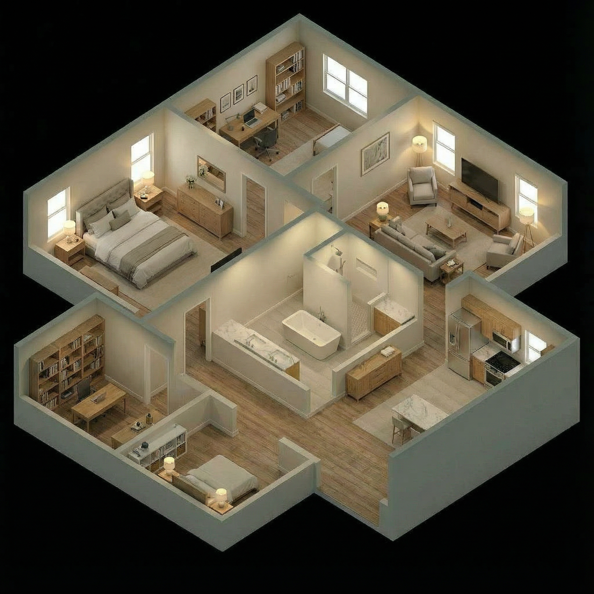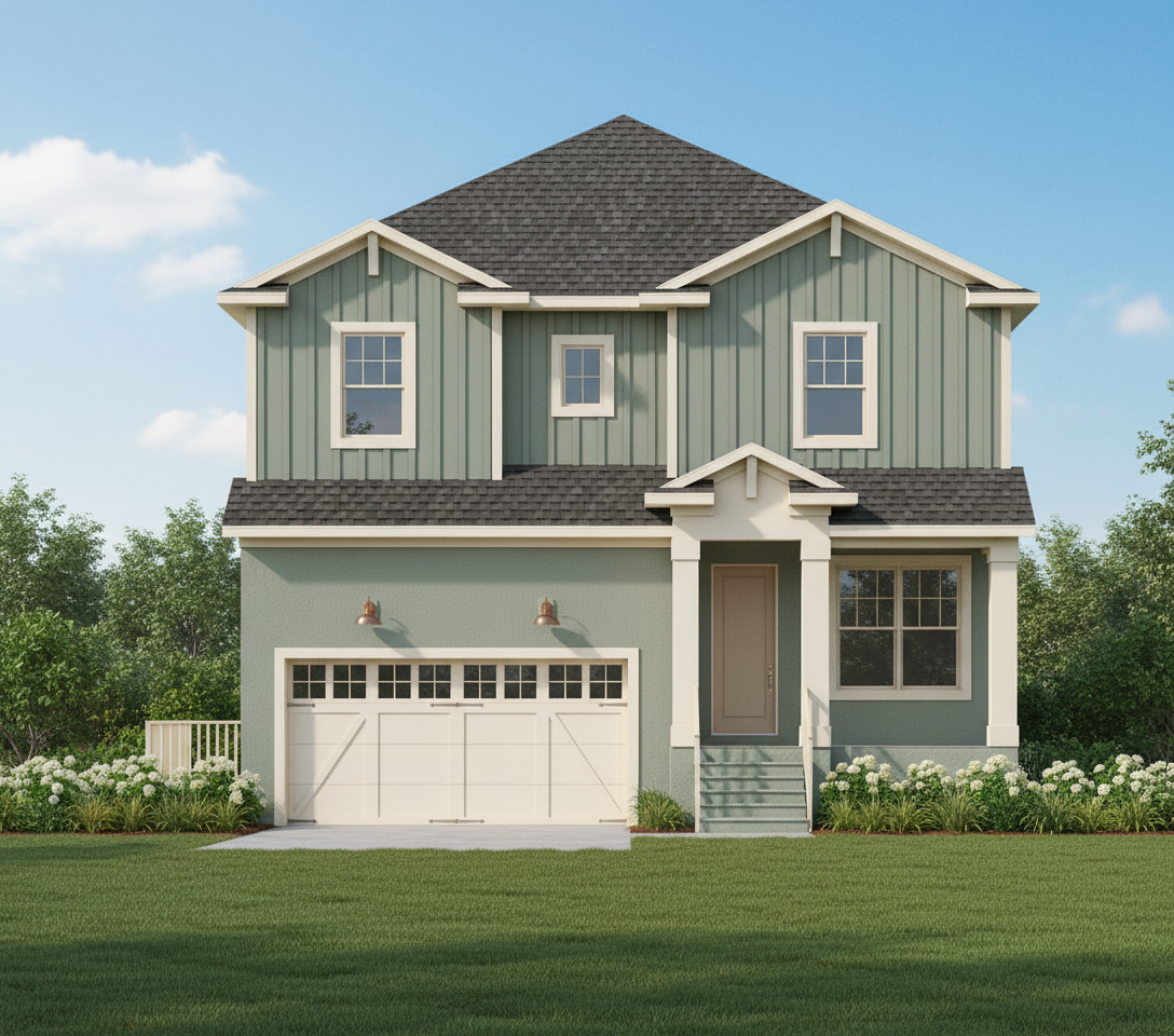 render the house with white stucco and black clay tile roof change balcony rails to modern black metal change stone around windows to light beige