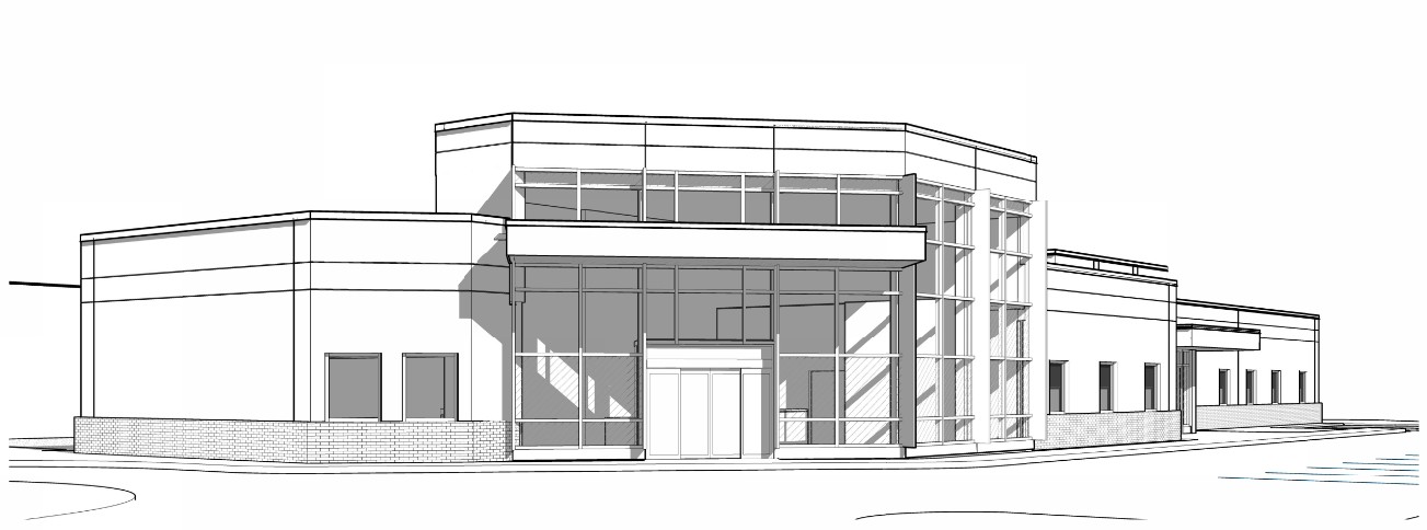 create a realistic architectural rendering of a modern building complex the buildings should feature smooth beige walls large glass windows reflecting the sky and sleek gray frames surround the complex with lush vibrant green landscaping including manicured bushes and small trees the parking lot should be a smooth dark asphalt with clear white lines make it a tranquil and inviting atmosphere use natural lighting to highlight the architectural details and create a sense of warmth and openness time of day is golden hour but still enough light to see materials on building well with some orange in the sky on one side some lighting from inside the building should be very soft and with a subtle warm glow in the windows it should not be strong and not draw attention brick as base to be a darker brown color like a light roasted coffee bean