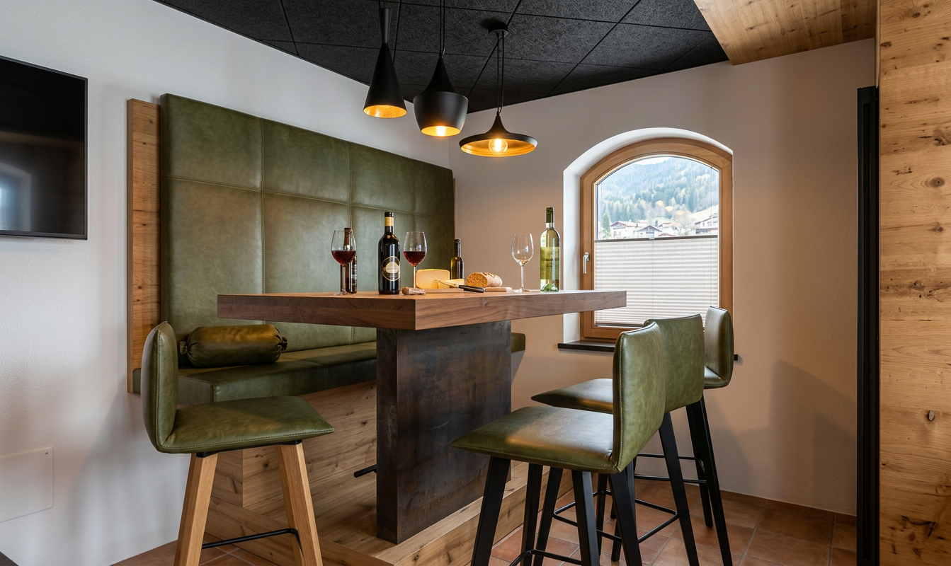 fabrics is made out of leather in olive green add indirect lightening behind the bench