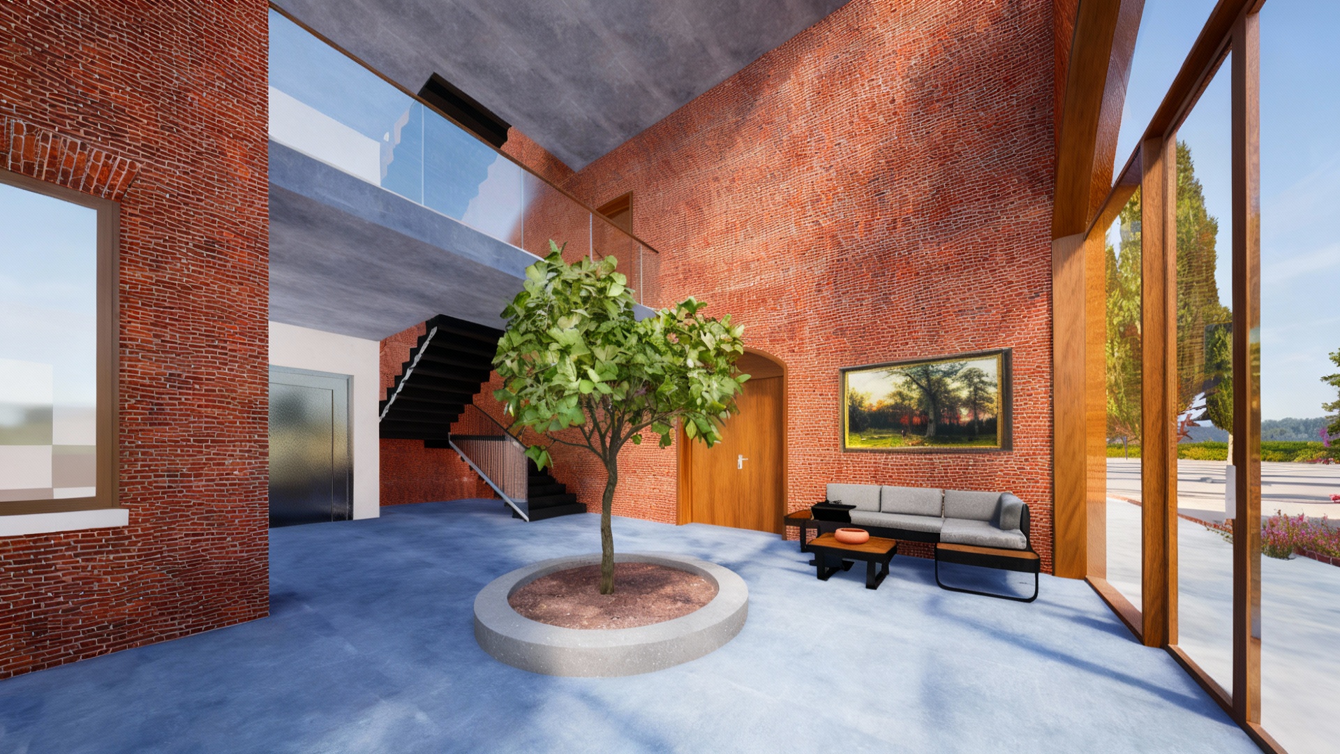 render this image in a realistic style maintaining the exact same composition furnishings and design without adding or removing elements