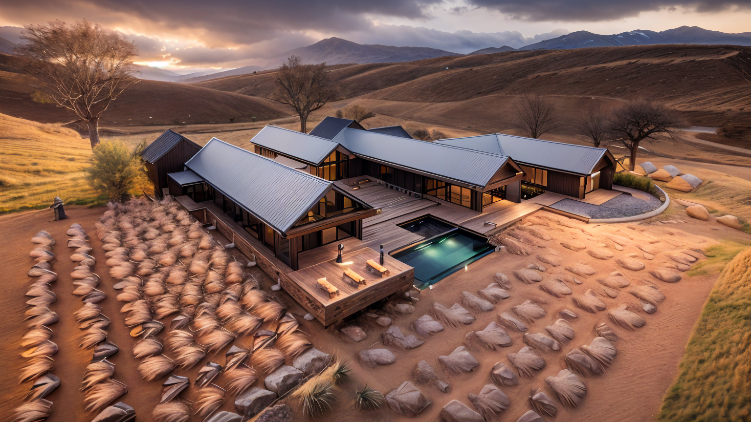 change the season to summer keep warm golden lighting add dark steel beams and remove some of the wood cladding architecture