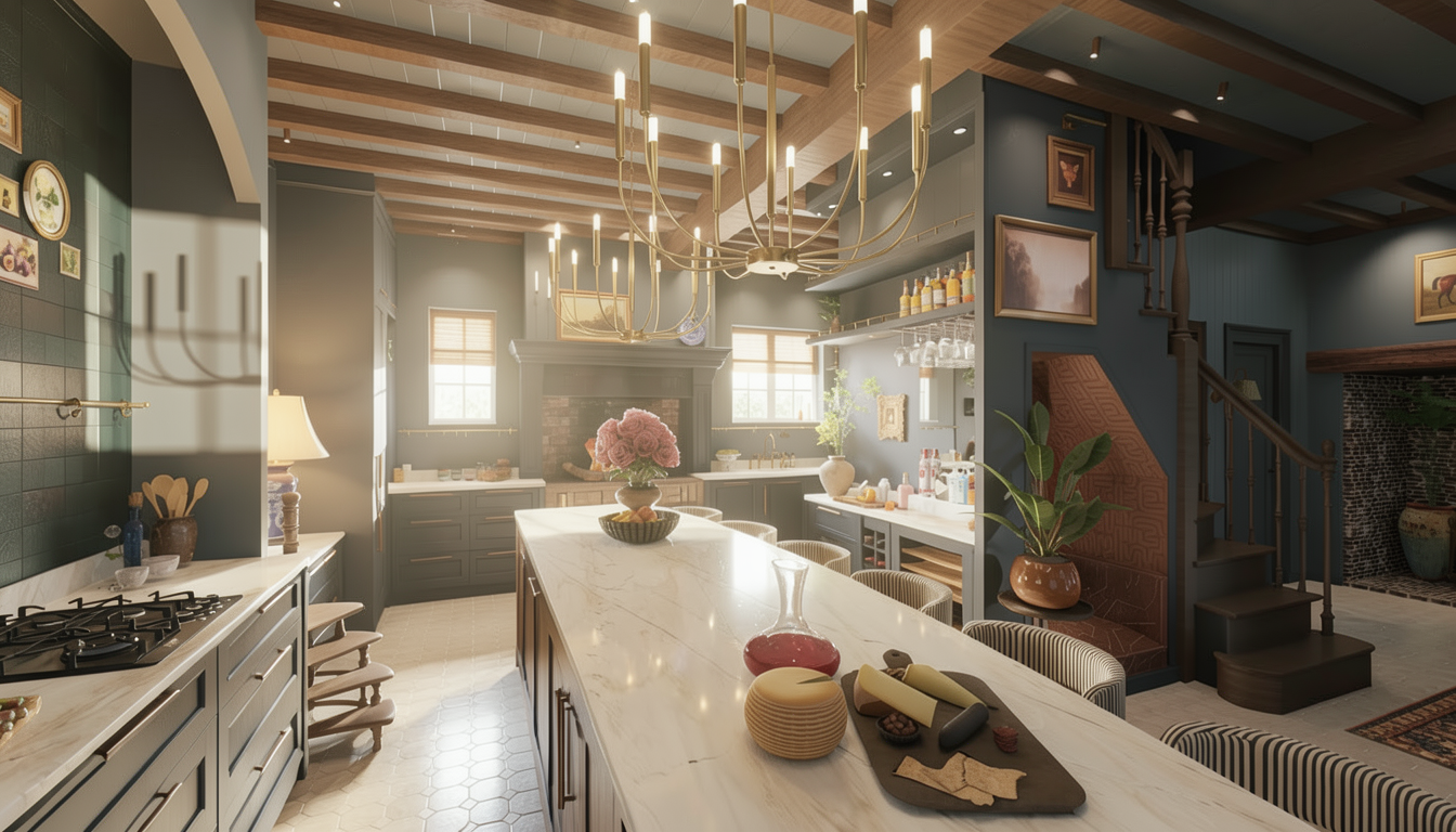 the apartment is on the 3rd floor of a parisian building the walls with millwork are in walnut the chairs are pierre jeanneret chandigarh chairs in walnut like this https www chandigarh design com fr fauteuils le corbusier 10 fauteuil de bureau pierre jeanneret le corbusier html the rug is in light beige
