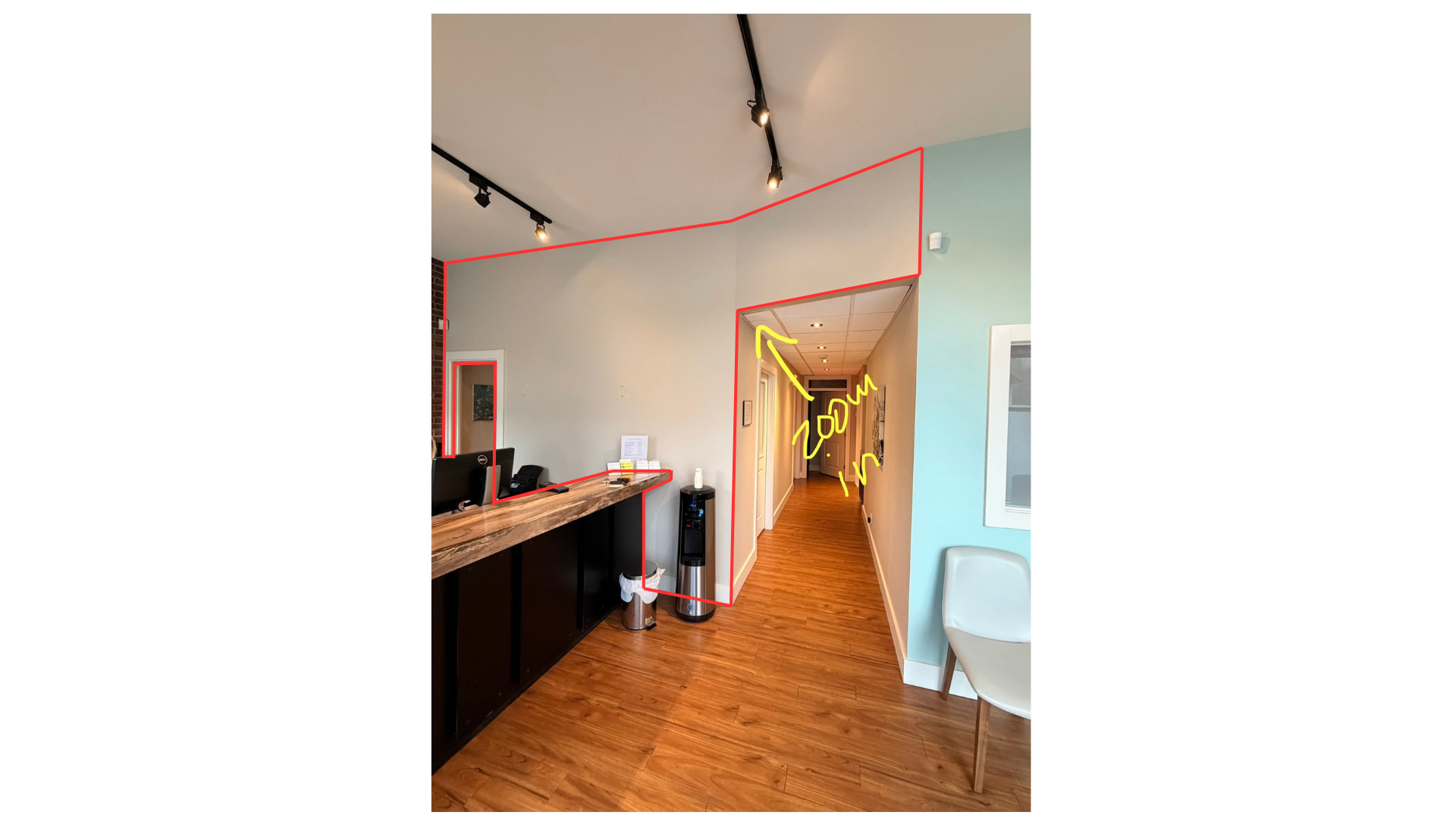 only modify the area inside the red boundary mask paint this area with a solid interior paint colour hex 20292d rgb 32 41 45 cmyk 78 66 60 65 treat the red outline as a strict mask and apply the colour only within this boundary do not modify any other part of the image preserve the existing lighting shadows furniture materials textures architecture perspective and all other surfaces exactly as they are do not redesign restyle or regenerate the room the finish should appear as a realistic matte interior painted surface no additional changes are allowed outside the masked area