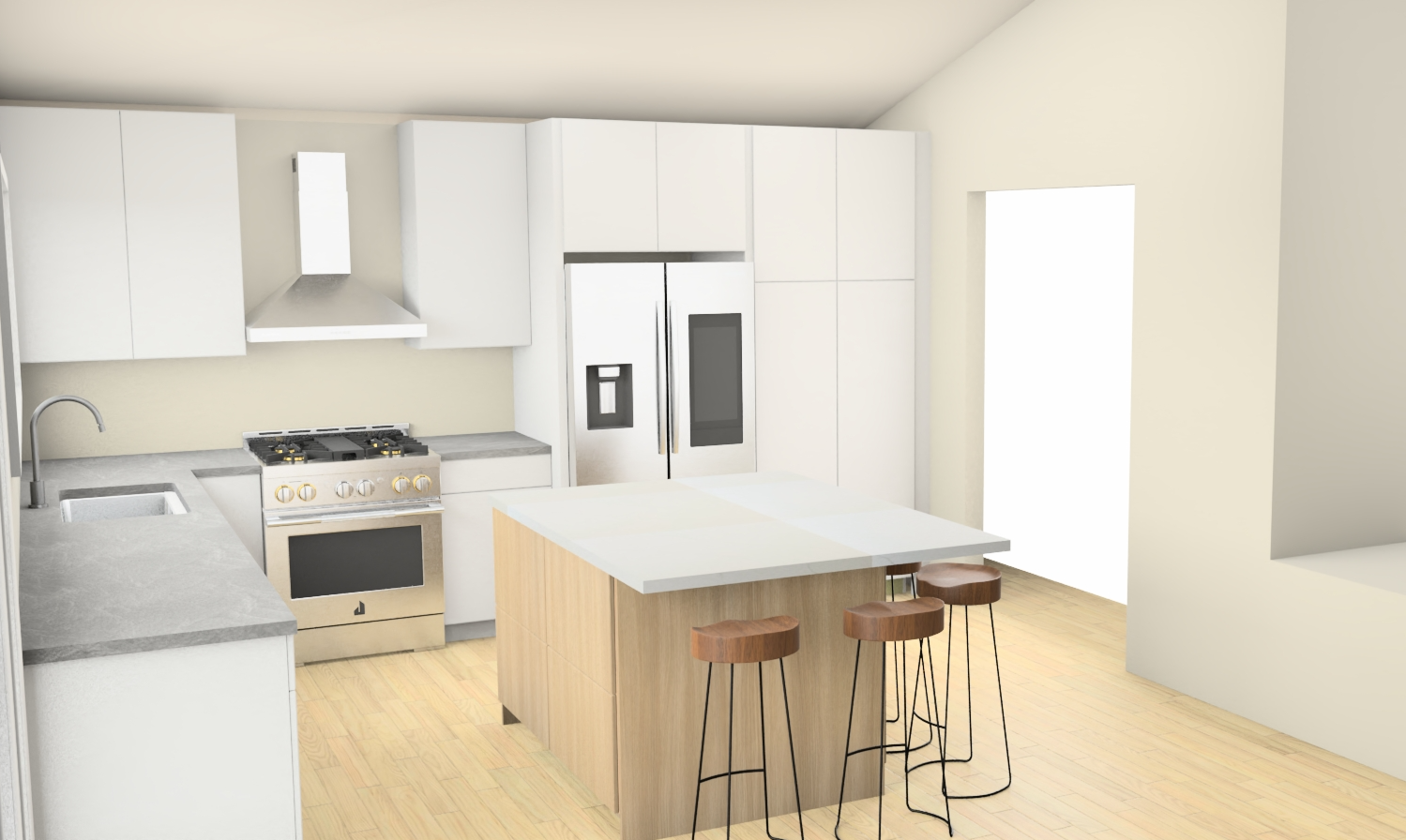 enhance with modern touches and living room beyond door opening