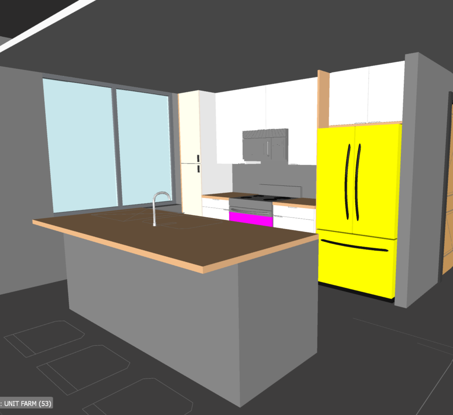 render this kitchen with stone color cabinets and black bar pull handles and faucet with quartz countertop and backsplash with a very light grey vein and appliances should be stainless steel flooring to be light oak walls to be painted flat white and base molding glossy white