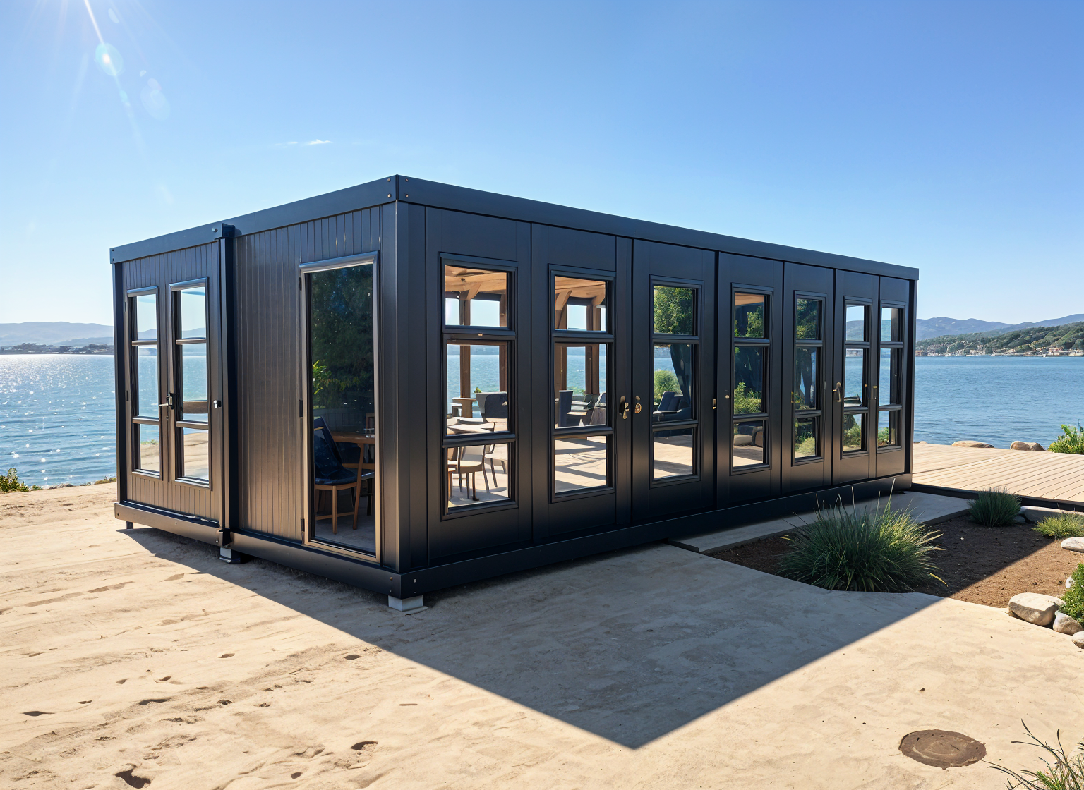 hyper realistic exterior image clear bright sky no visible sun