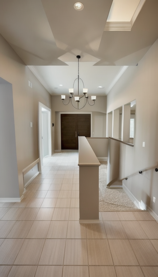 exterior shot please add a light walnut floor with wide planks remove the pillars for one large pass through looking into the next room consolidate the door on the back wall to match the photo more accurately architecture