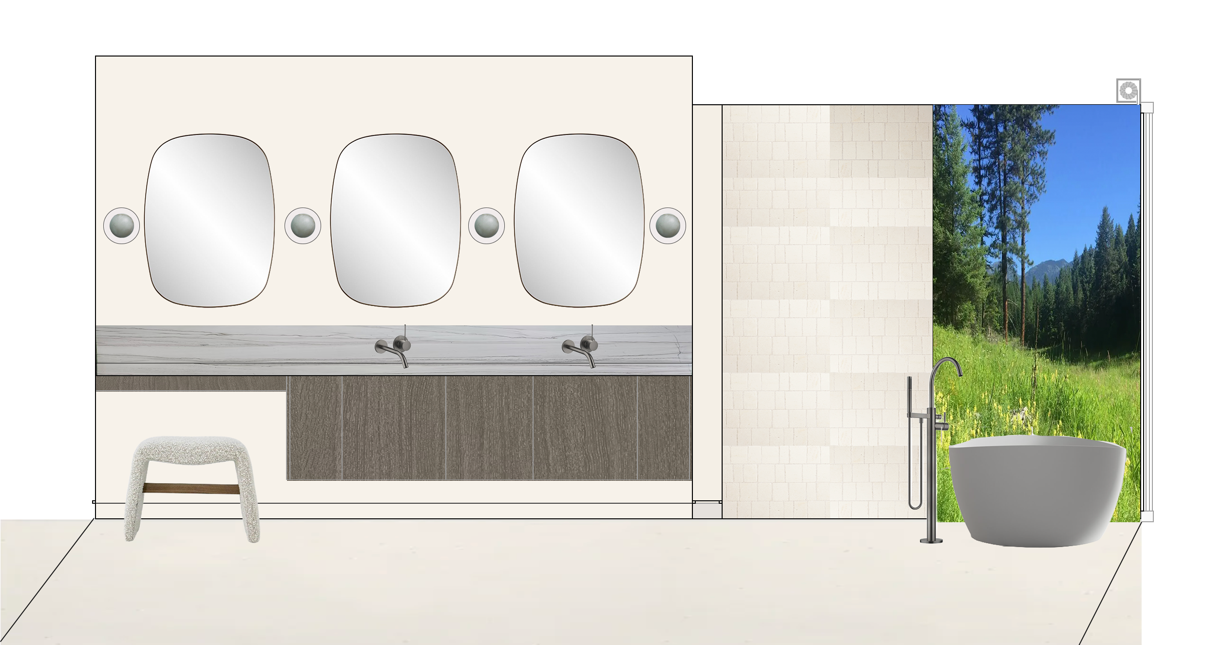 the window is behind the tub and don t add any detail other than what is shown no towels