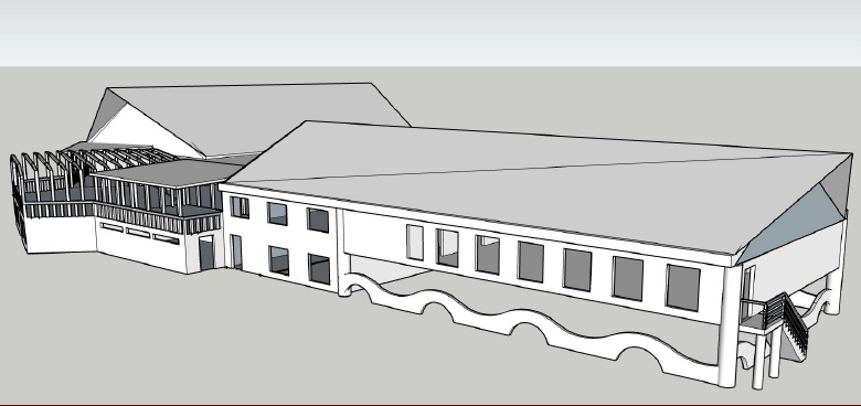 polynesian style boat house on the beach colorful sky palm trees thatched roof heavy timber stone foundation