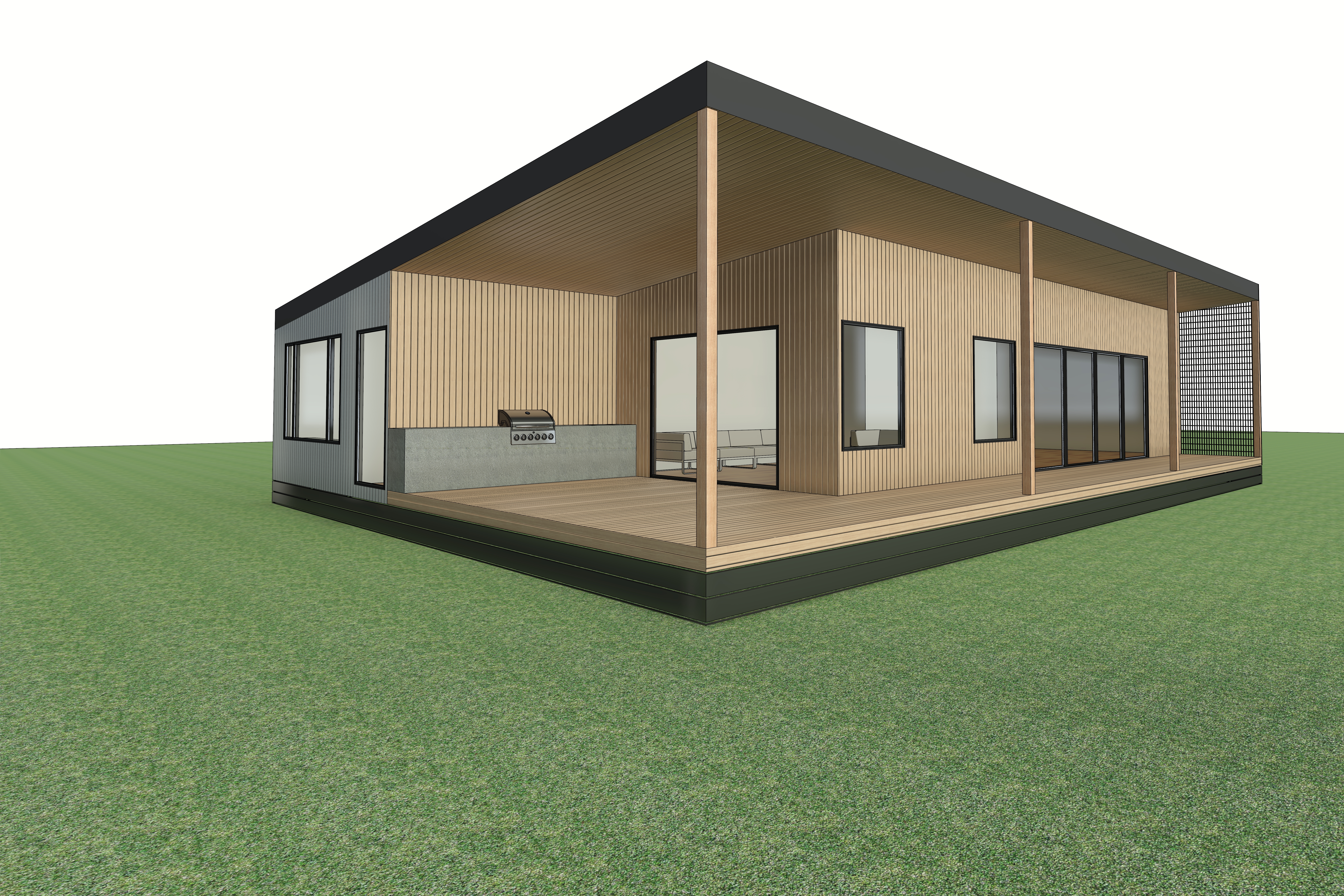 a modern cabin with a minimalist design featuring a combination of galvanized corrugated iron exposed steel and natural hardwood timbers and white tones for the exterior cladding location in a bushland in australia architecture